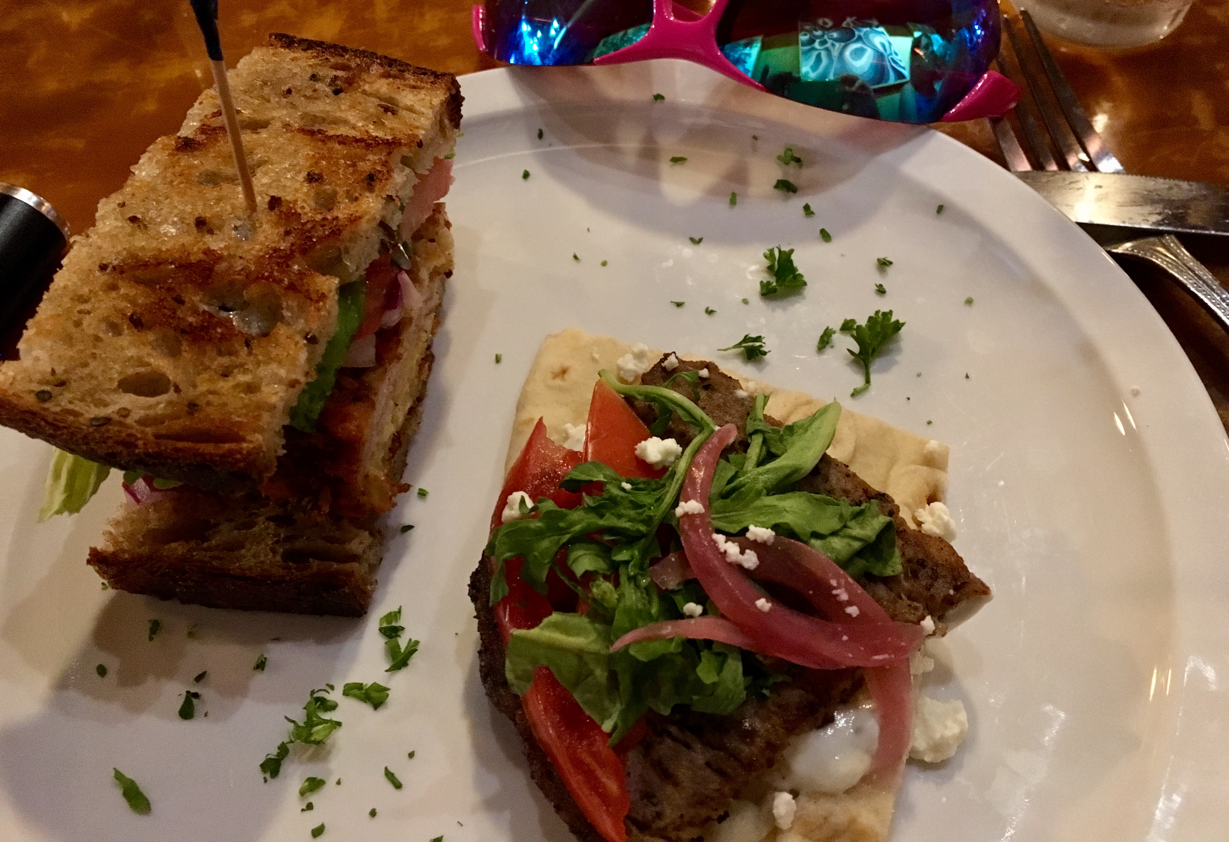 then breaded pork tenderloin on grilled rye and a gyro w lamb with Boone Dog Brown Ale.
