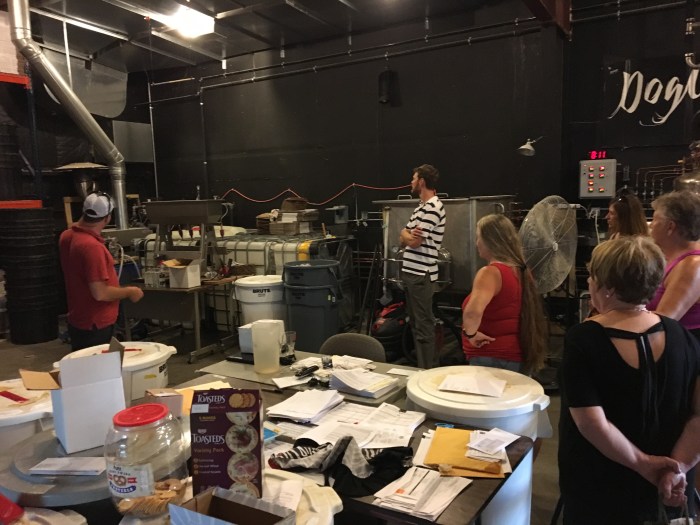 After an explanation of the distilling process for various liquors, we began tastings of 2 whiskeys, bourbon, 2 rums, and vodka – very small amounts.