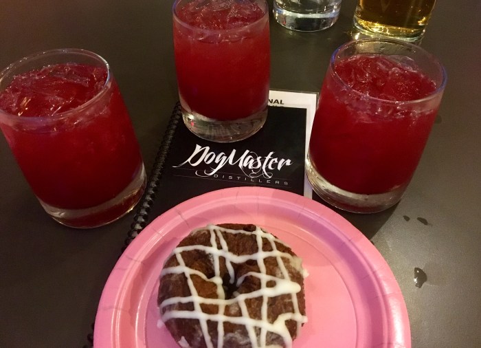 To end our evening, Blackberry/lemonade/whiskey cocktail with a blueberry doughnut from Harold’s Doughnuts.