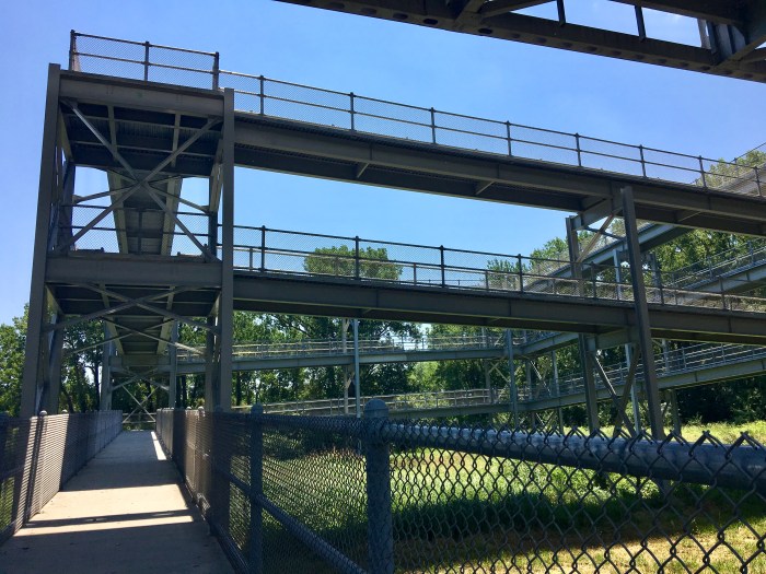 Even though Billie and Donna hadn’t caught up yet, I pressed on to Jeff City – it was getting hot! A 3-story circular ramp took you up to the bridge to cross the Missouri River.