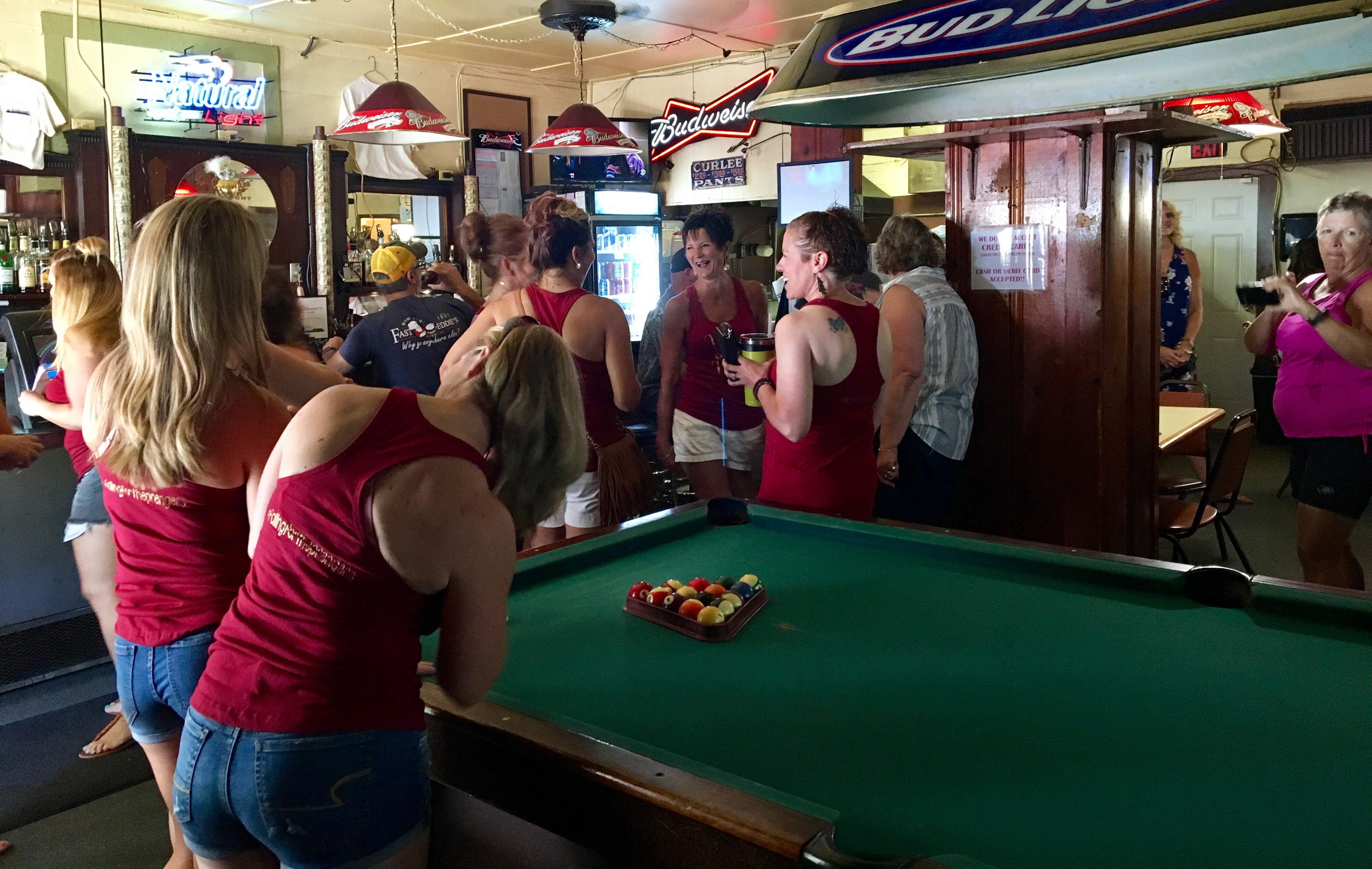 Shortly after the kids left, a bus pulled up with about 20 women enjoying a bachelorette party. They were on their way to Hermann for some wine tasting but needed a potty stop … and some shots of tequila.
