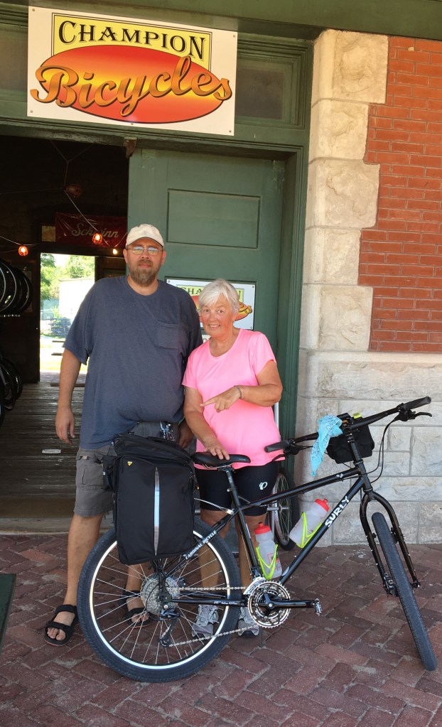 Look. The perfect Topeak panniers were available in small town Sedalia. The owner, Jason, also fixed an annoying rattle on Donna’s bike.
