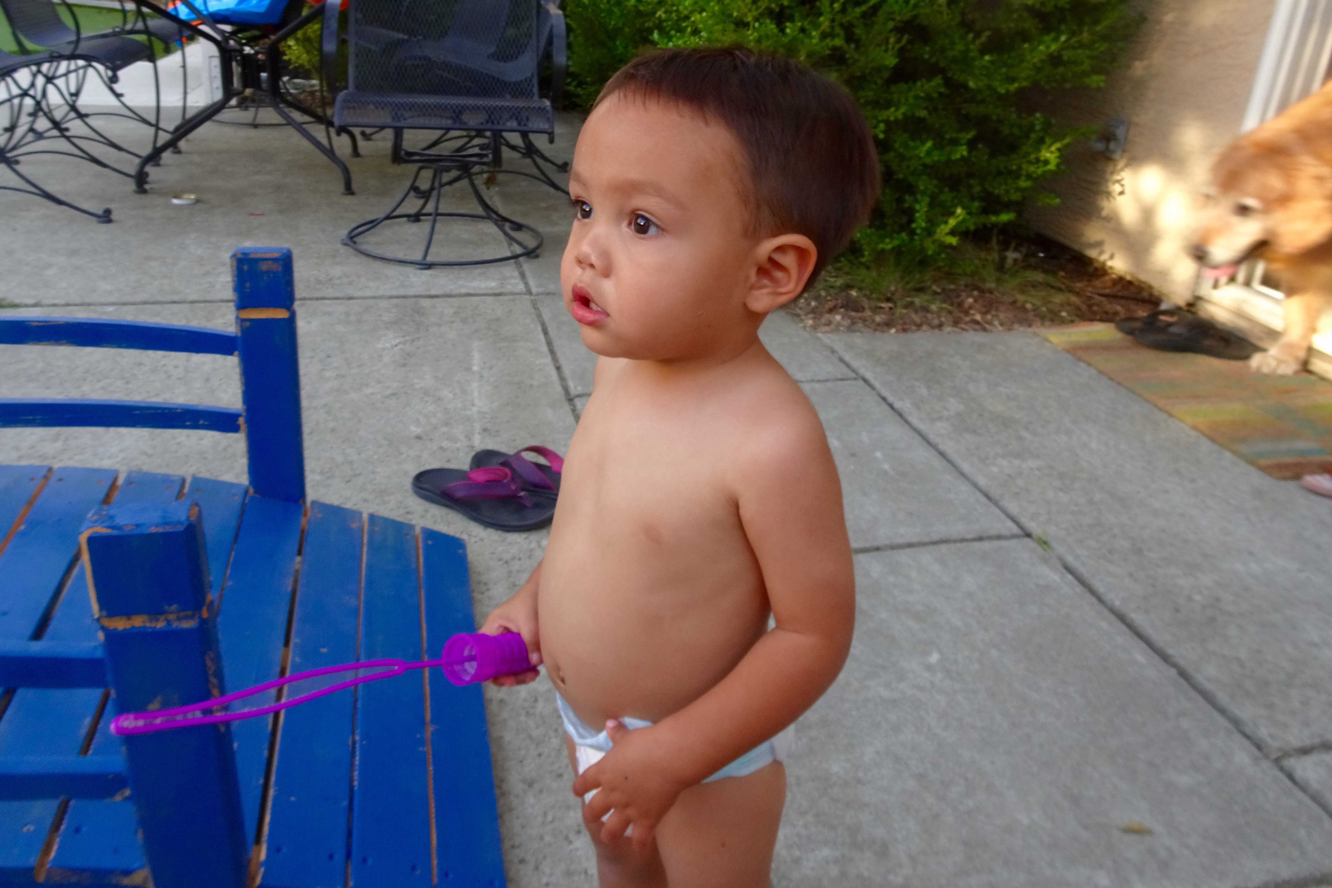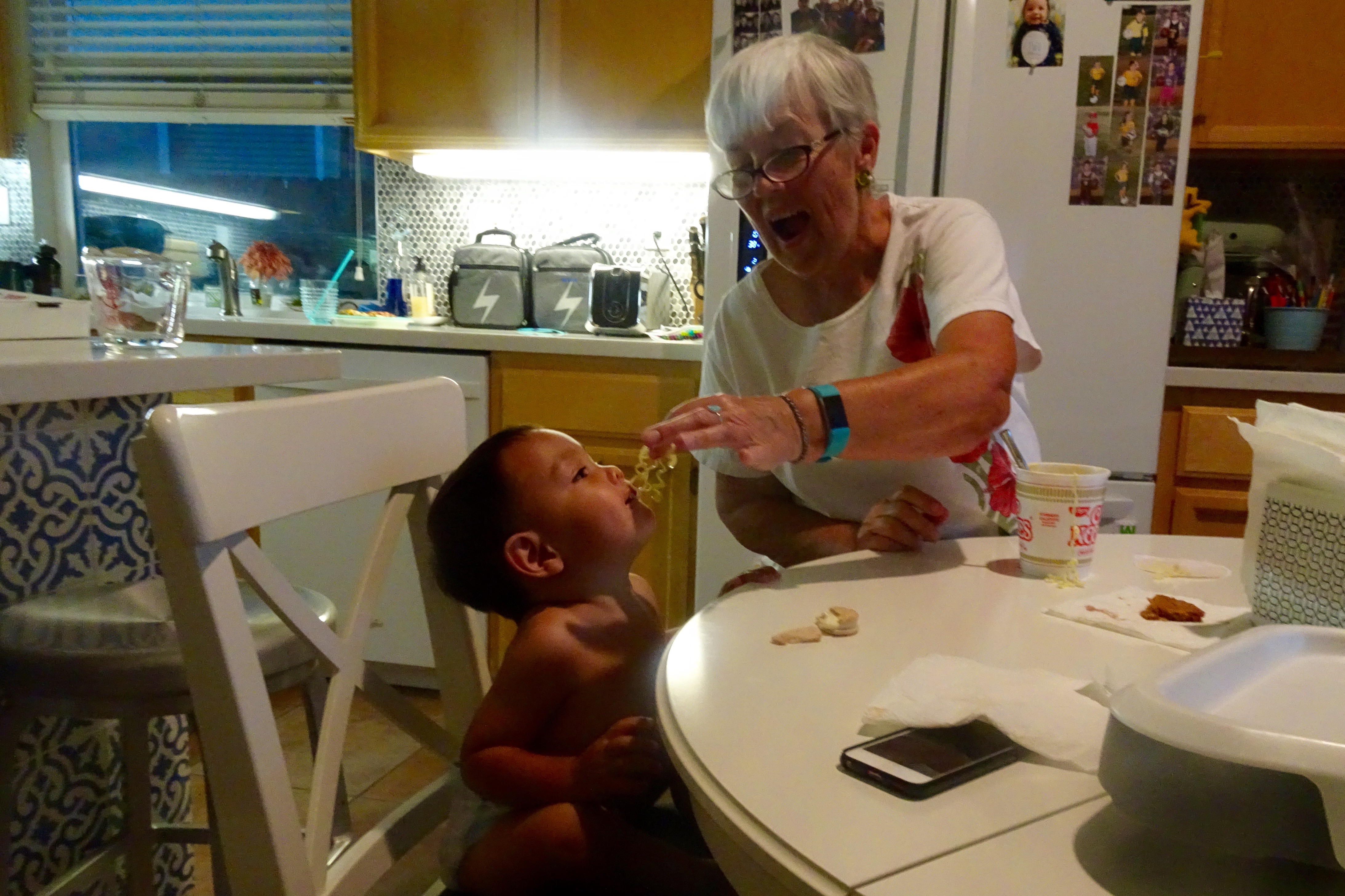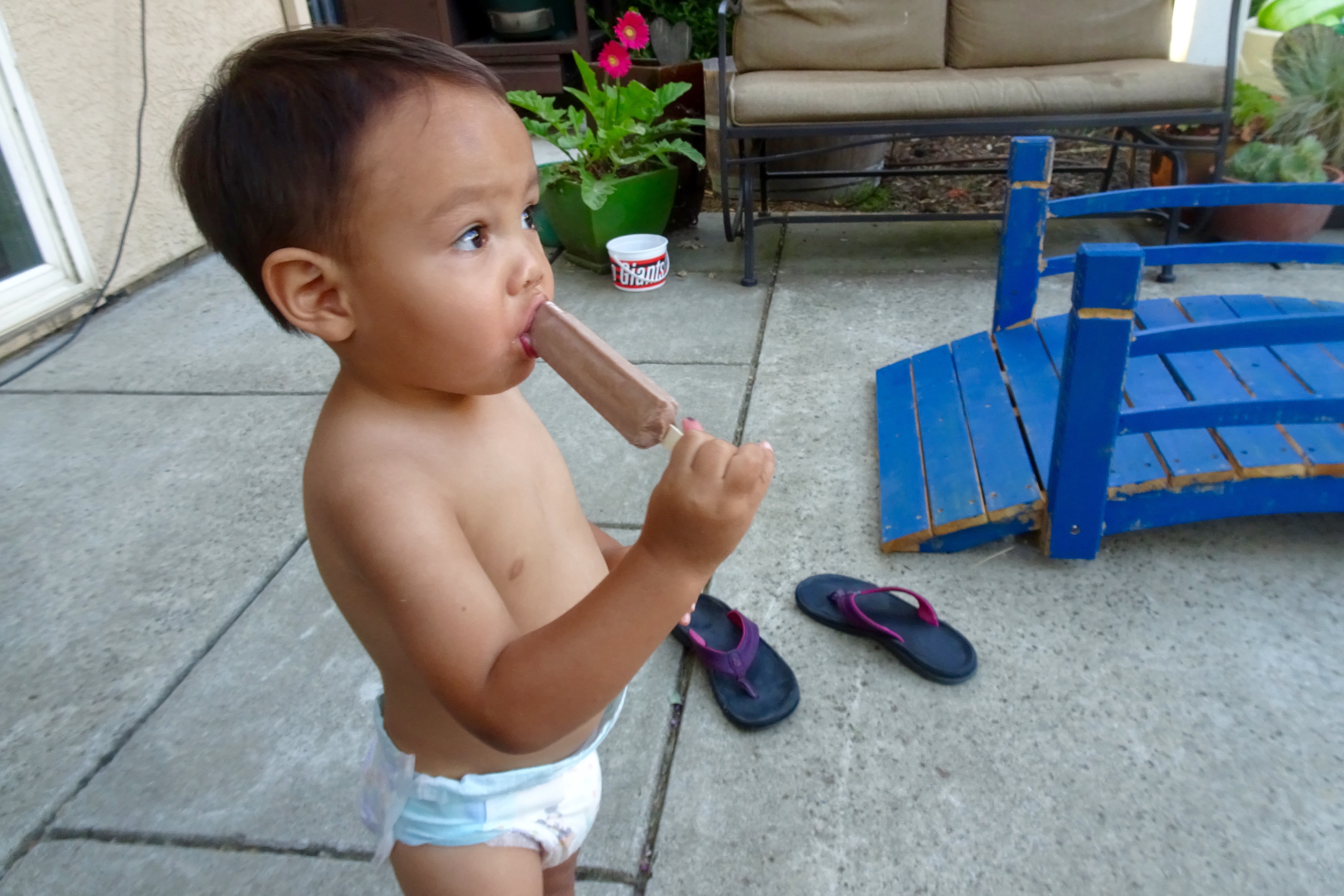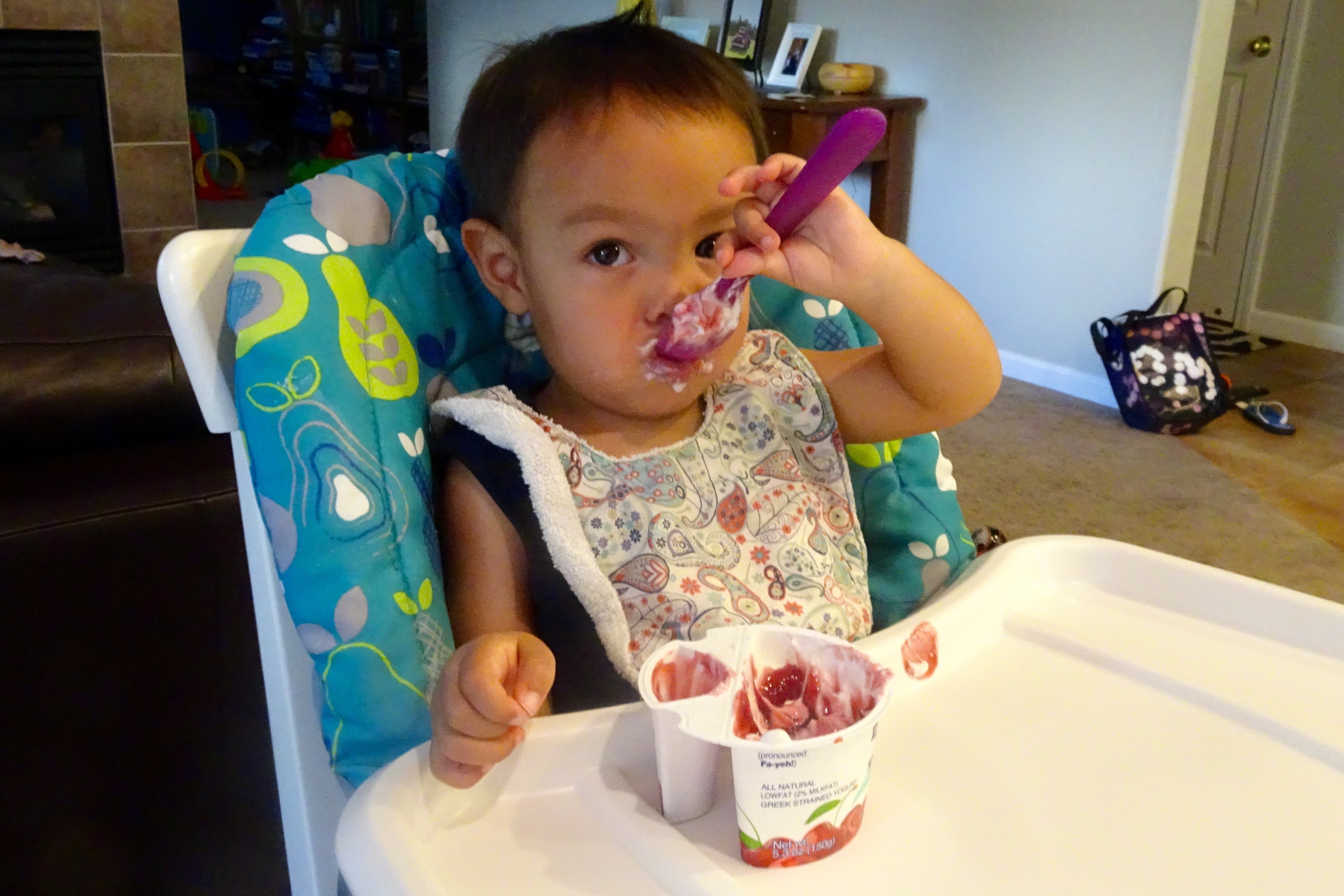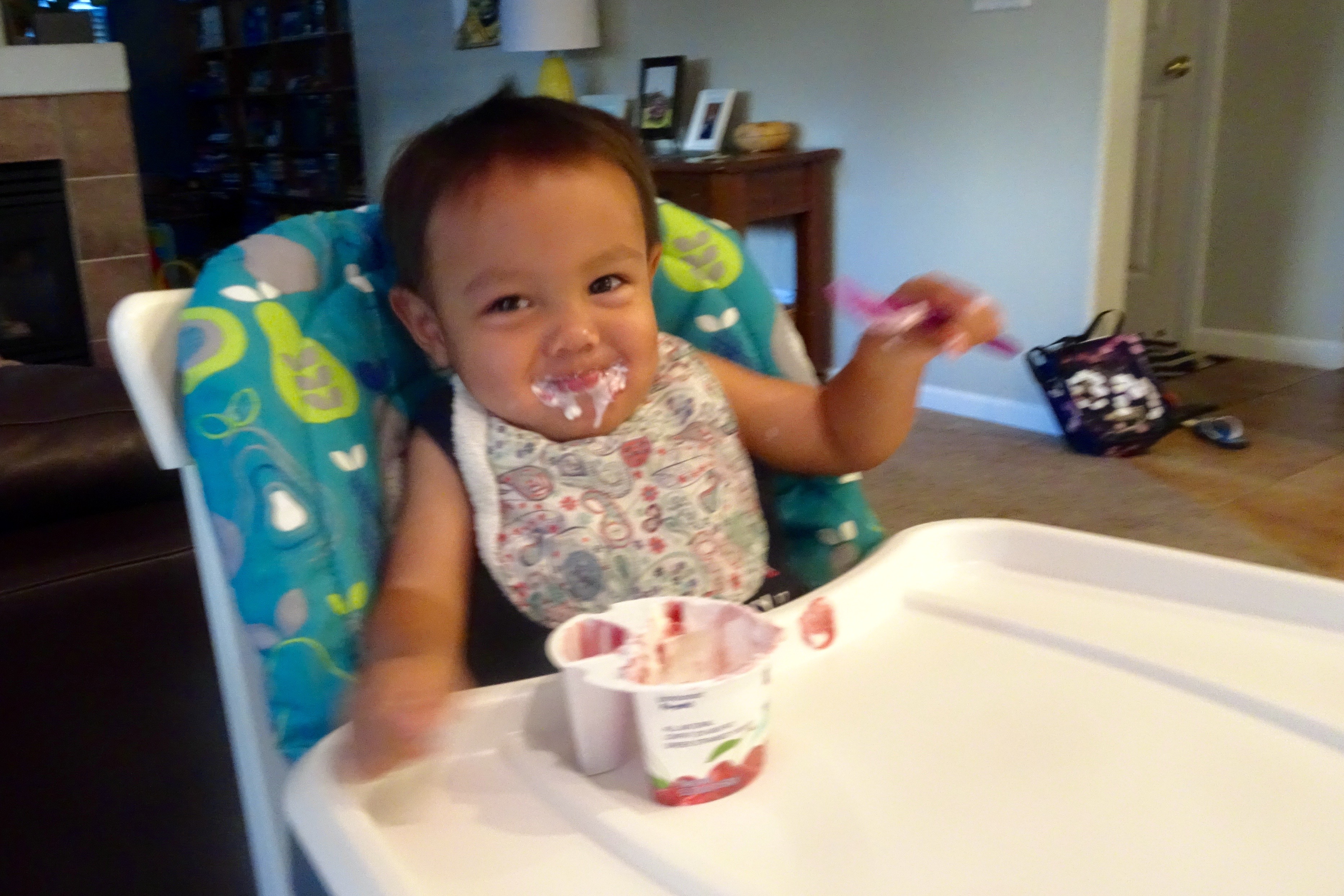 Eating yogurt is much less messy for Carson now that he started using a spoon instead of his hands.