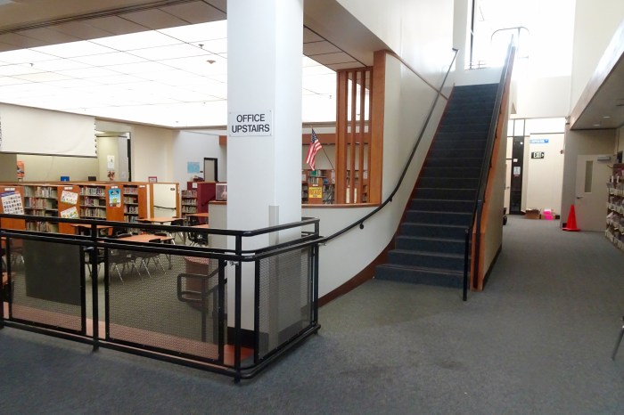 Now walls have gone up to create individual classrooms. The library is still in the center of the large building, the school office is upstairs.