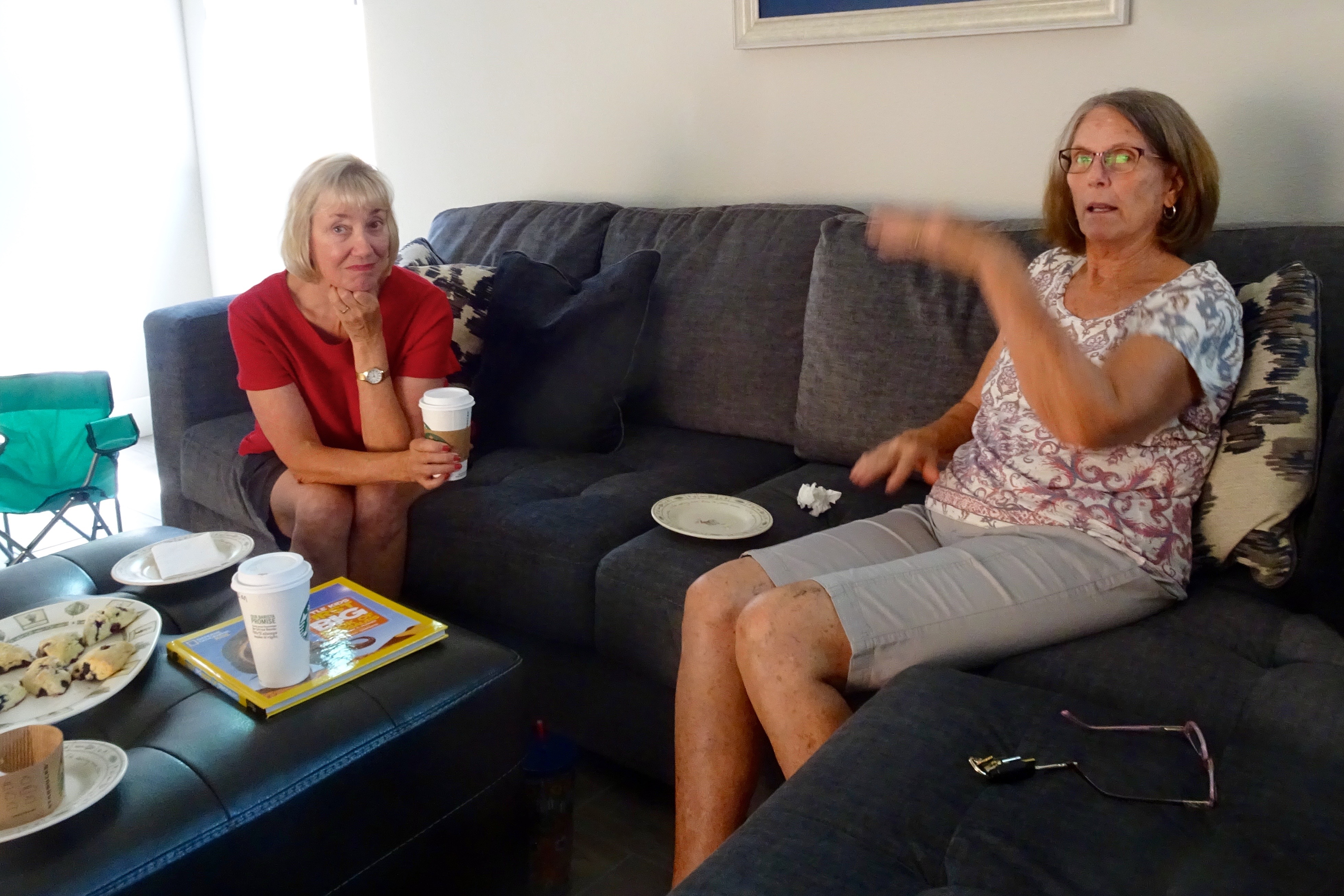 In the past 24 days, Phyl and I have walked 3.5-4.5 miles sixteen mornings – at sunup usually because it’s been so hot. This morning, Phyl had something else to do so I was on my own. How to change things up a bit? Hmmm .. carry water in an insulated cup.