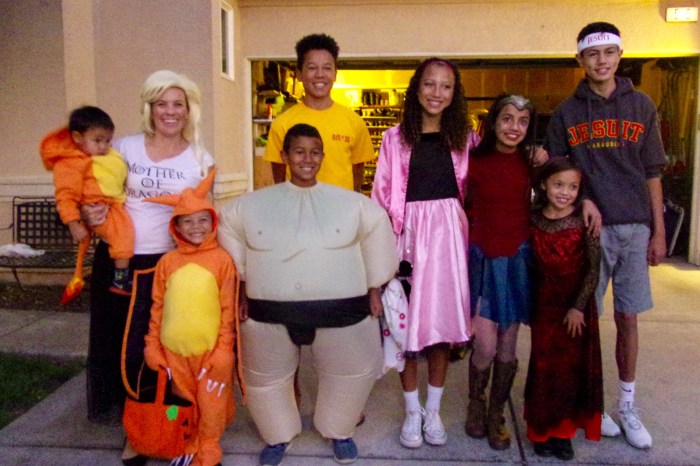 The crew gets ready to go trick-or-treating:
