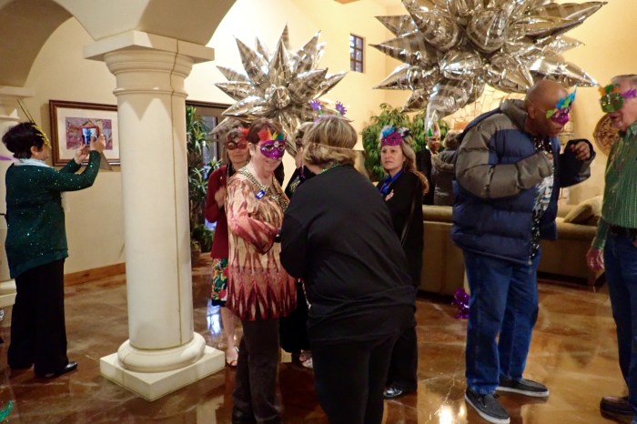 Eleven days after the actual Mardi Gras but a very good party at the lodge nonetheless. Adrienne came with me! Mix and mingle in the lobby