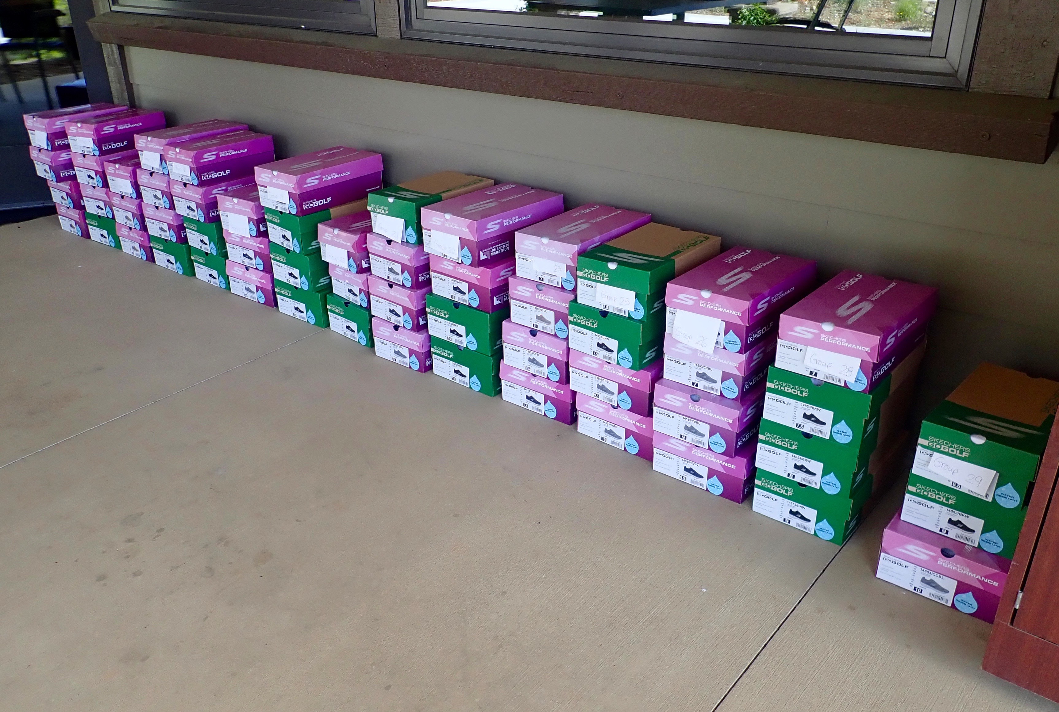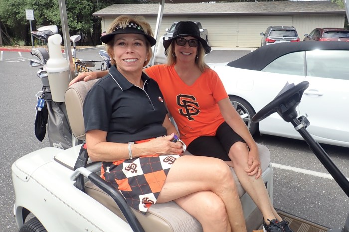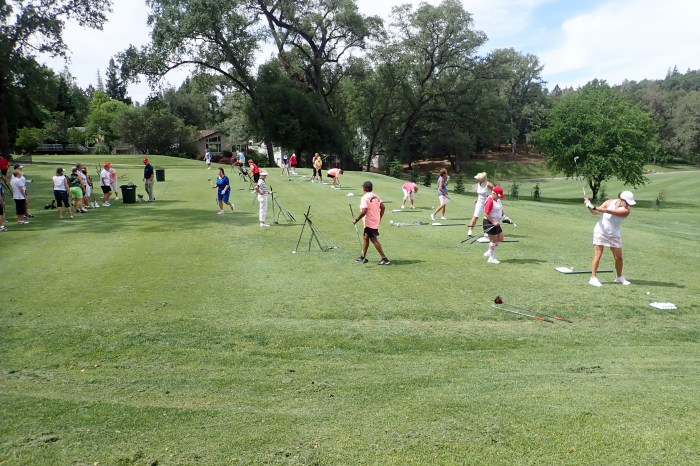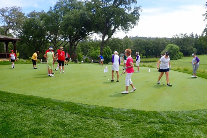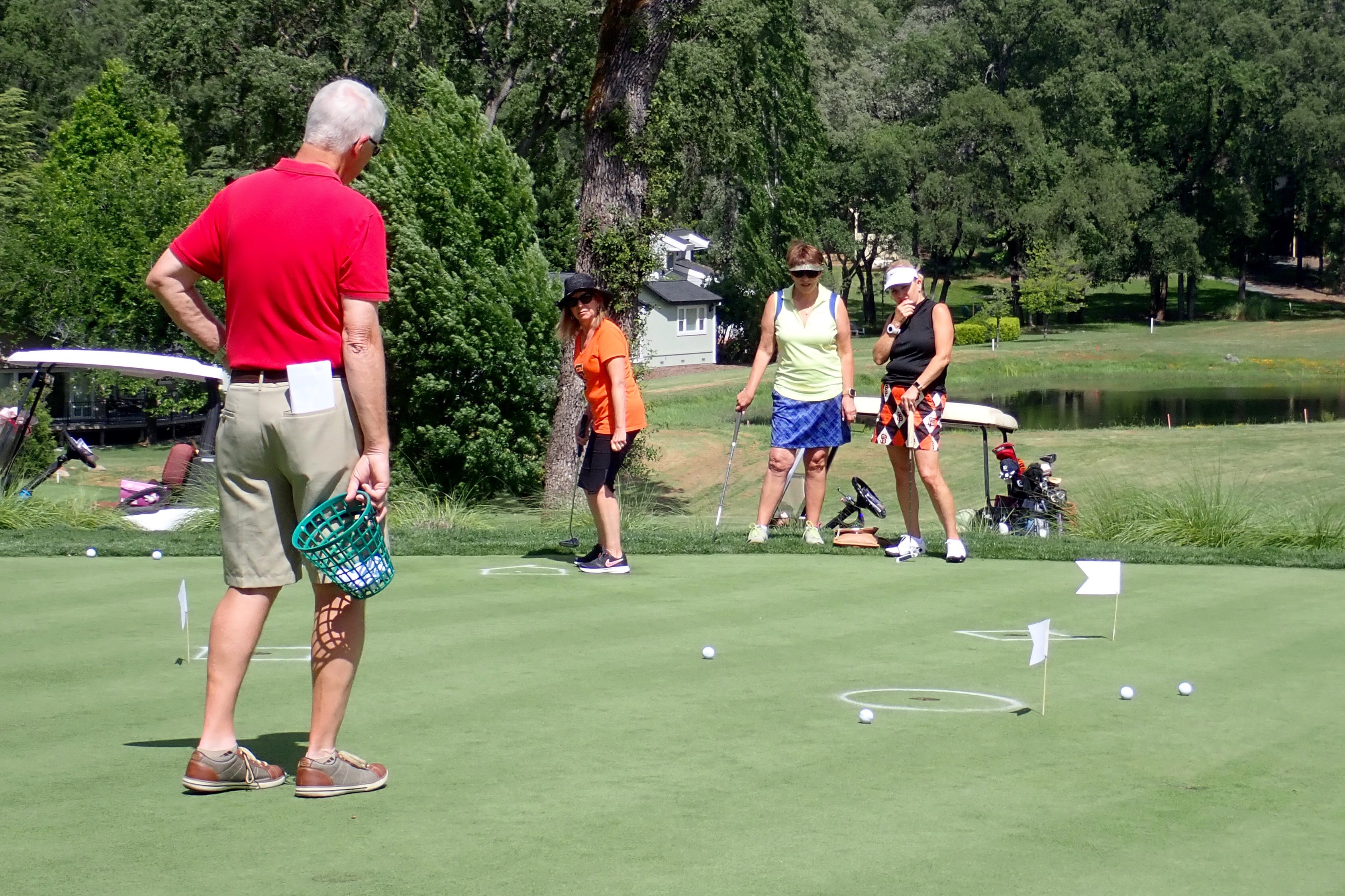 followed by lunch in the Cedar Room. Then came the very popular Filly Race. The top six teams from Wednesday’s 9-hole round played. Carts raced from hole to hole and lined the greens to watch them play 6 holes. Teams are eliminated after each hole.