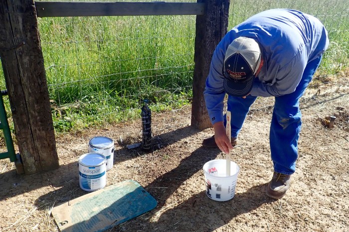 So after the first tree, I had to know if I was being too sloppy (more paint on the ground vs paint on the tree?). Justin’s answer, “You’re not being sloppy enough.” OMG – thank you!