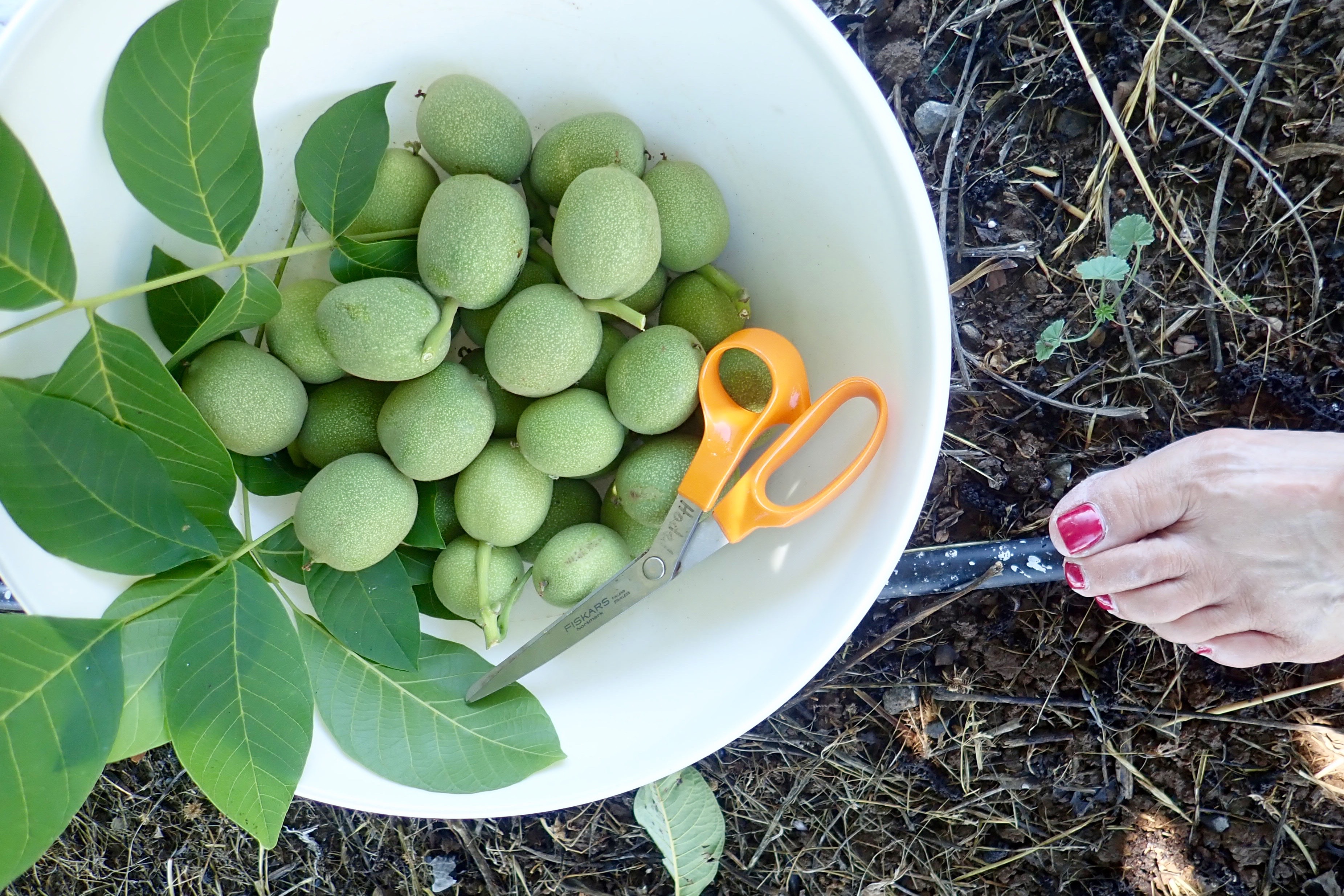 In the early afternoon, I gathered green walnuts at Justin’s.