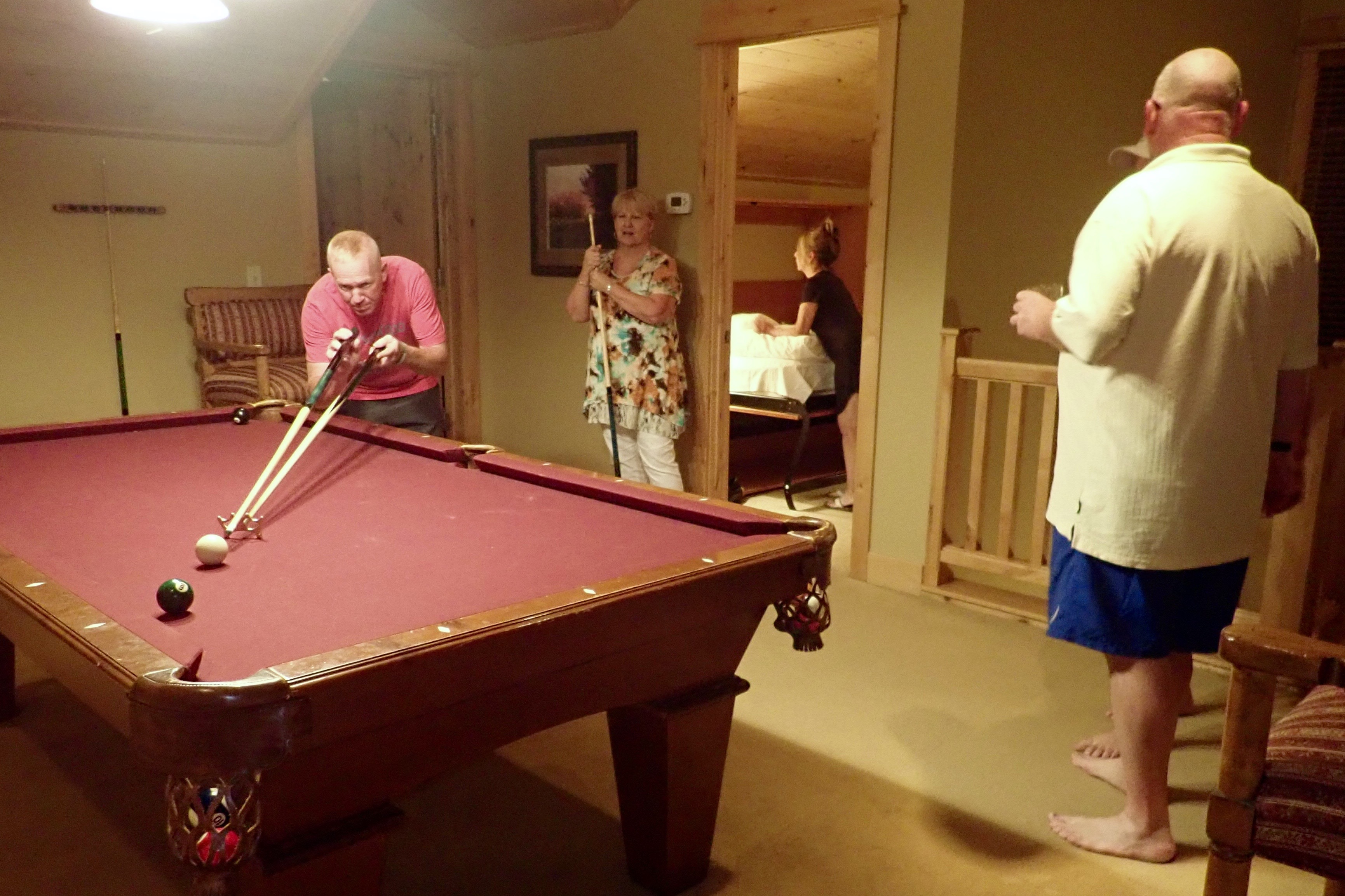 And then a game of pool (smile/hugs: there’s Maria in the background fluffing my pillow):