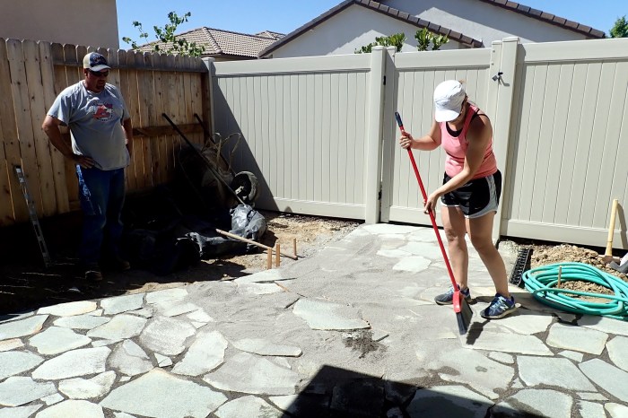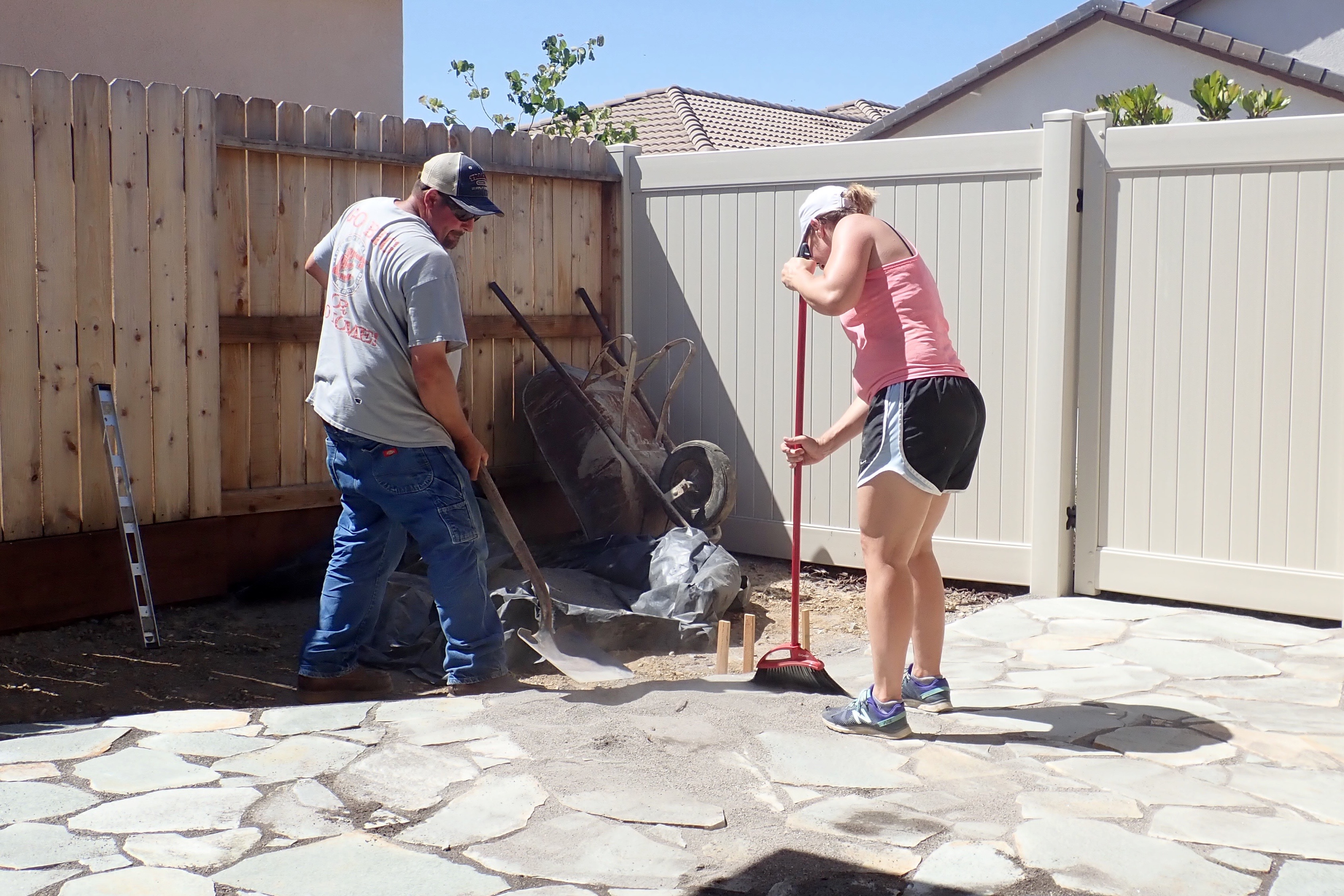 Golf in the morning.Justin and Thais came over to work on the flagstone.