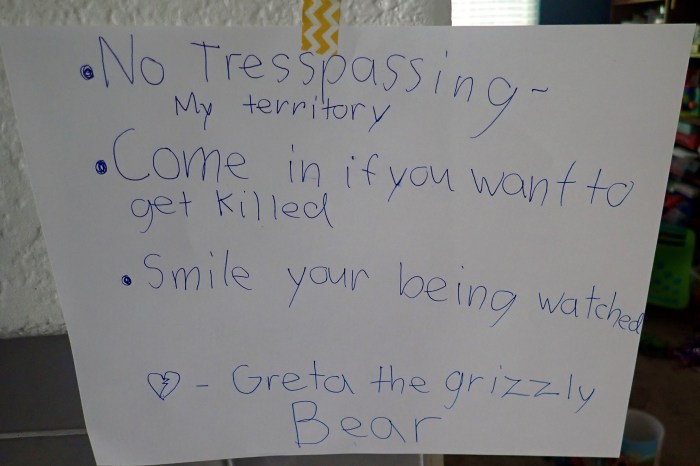 Near the bear exhibit were life-size cut outs of three bears (smallest to largest): black bear, grizzly bear, polar bear (this would become important later in the day).