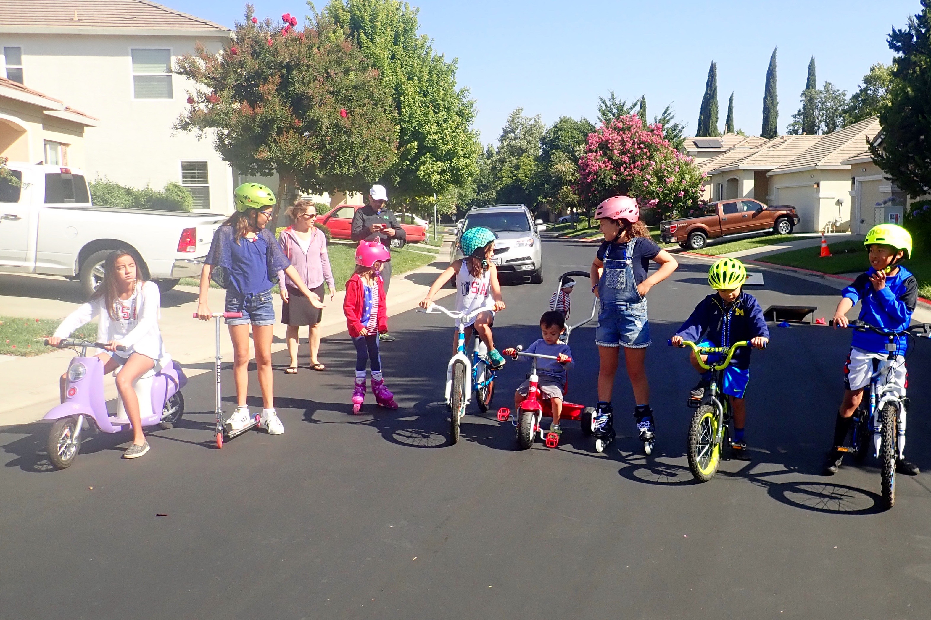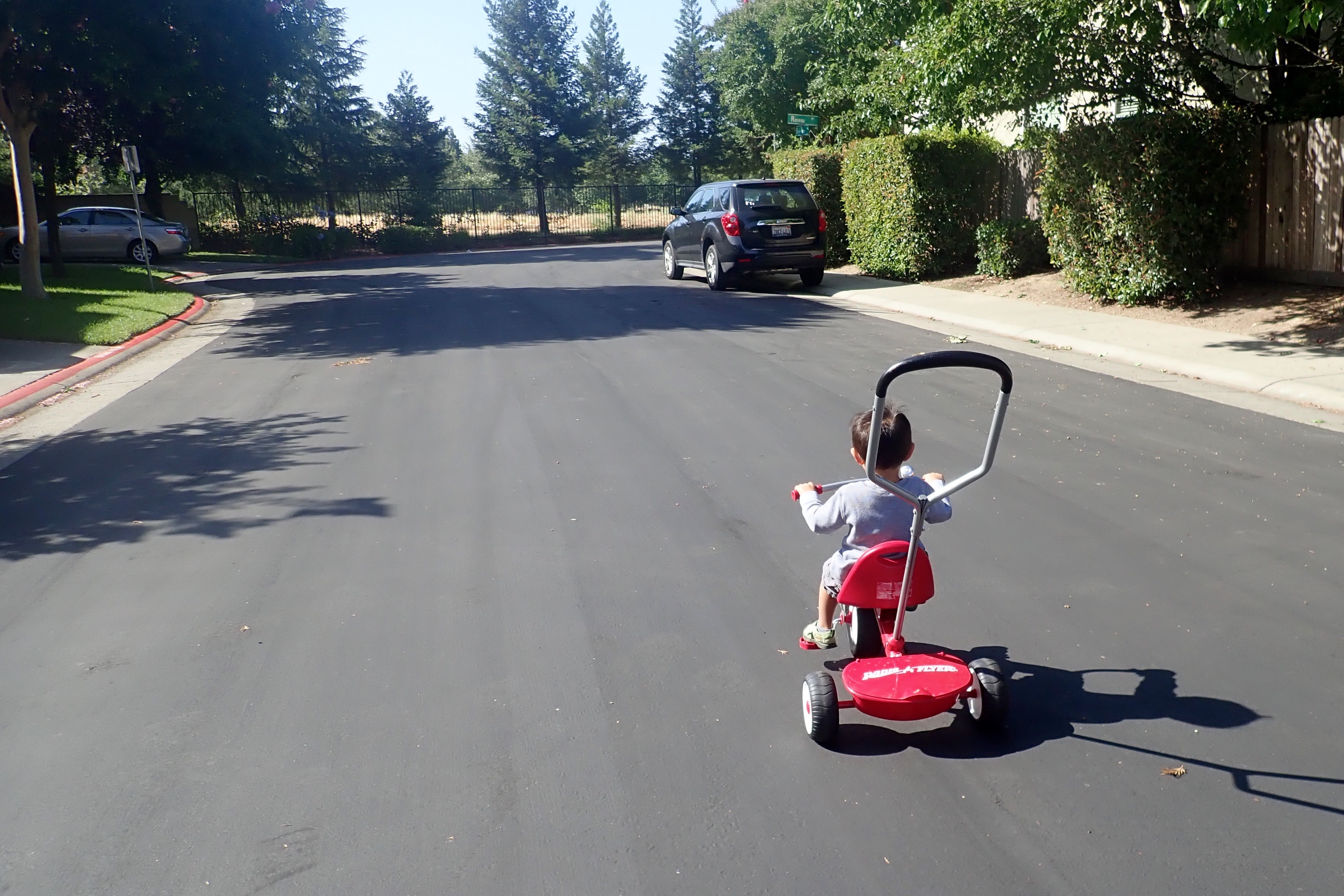 By the first corner, everyone was out of sight, Carson pedaled on. He made it all the way around!