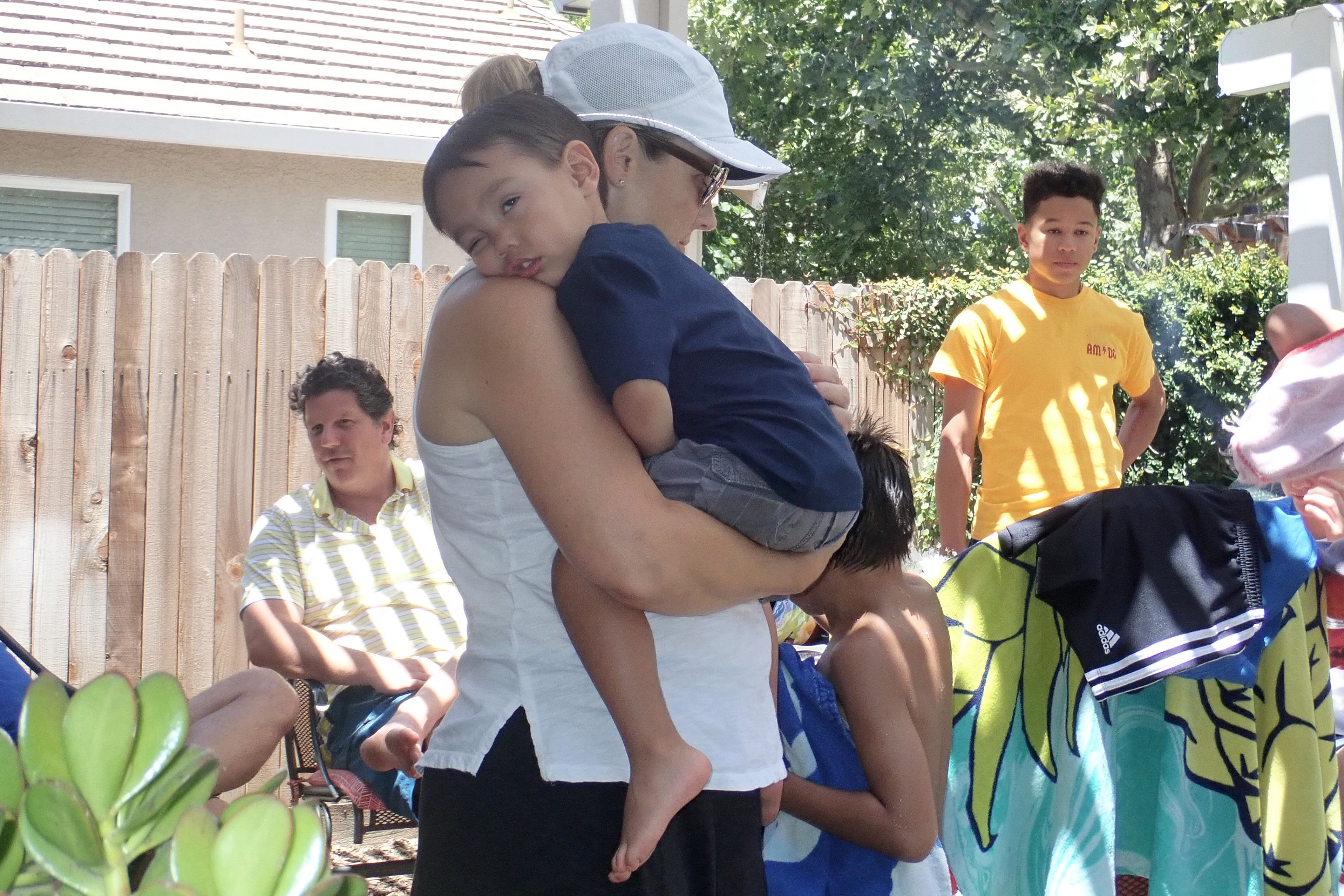 In the afternoon, there was a barbecue at Leah and Jeff’s. All that pedaling made for a tired boy.