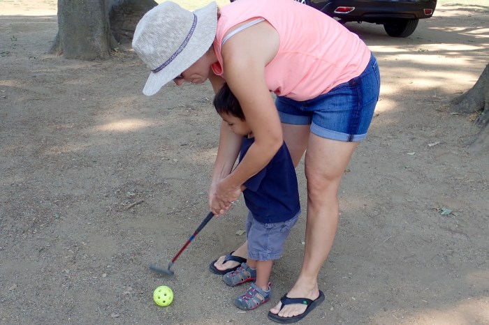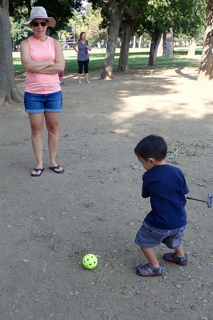 August 4, 2018 by arletelouise Saturday golf How many rocks and leaves will fit inside a wiffle ball? Share this: Click to share on X (Opens in new window) X Click to share on Facebook (Opens in new window) Facebook Like Loading... Related