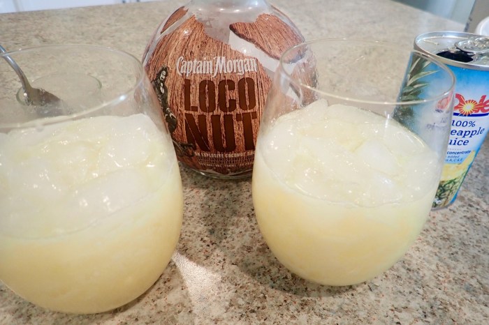 Today’s beverage #1: Captain Morgan Loco Nut (coconut rum) and pineapple juice. Delicious!