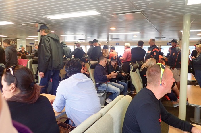 With Adrienne. We drove to Vallejo and took the ferry to ATT Park – about an hour’s ride.