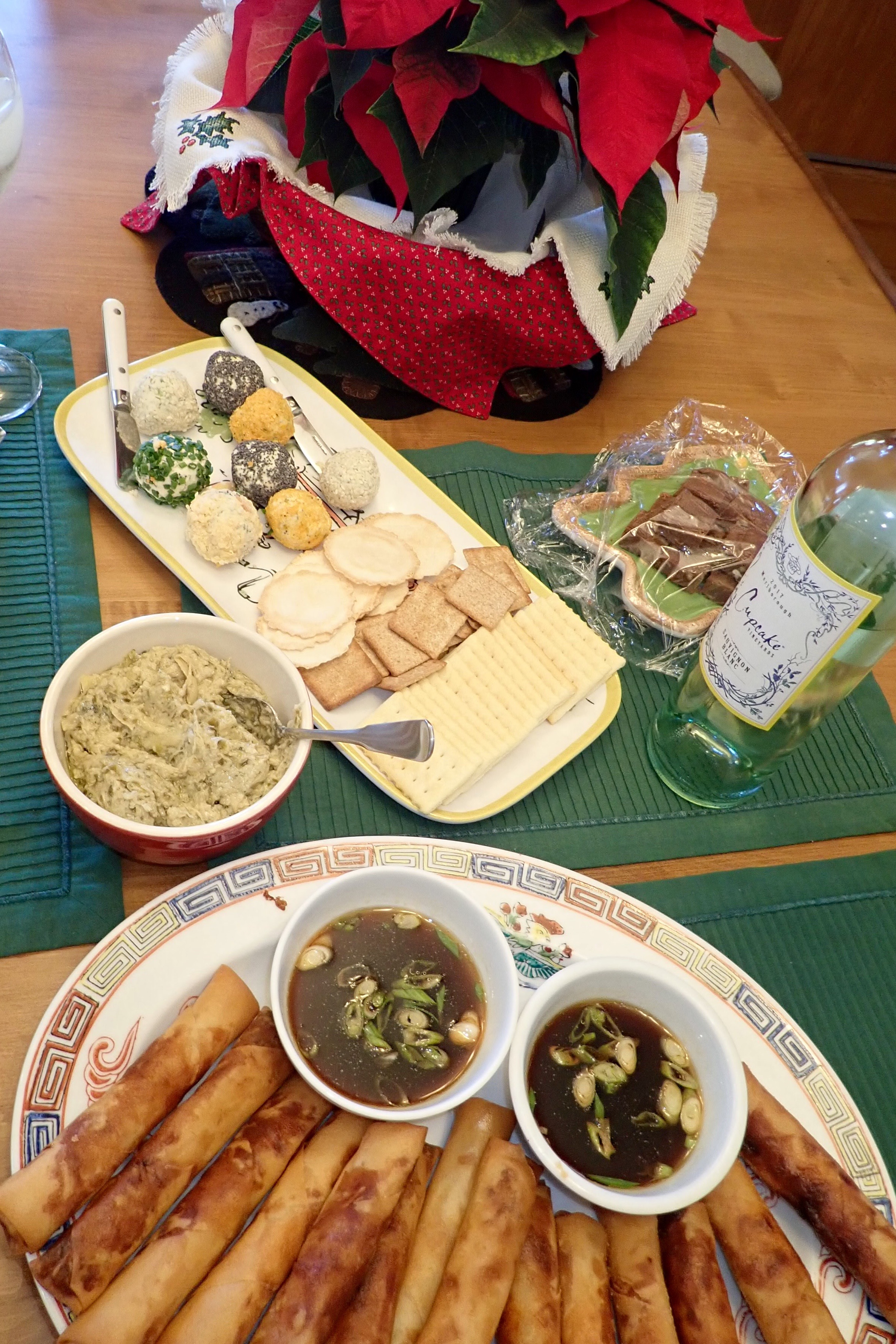 Dilled onion cheese balls rolled in various coatings and Spring rolls (from Merrilyn’s pedicurist!):
