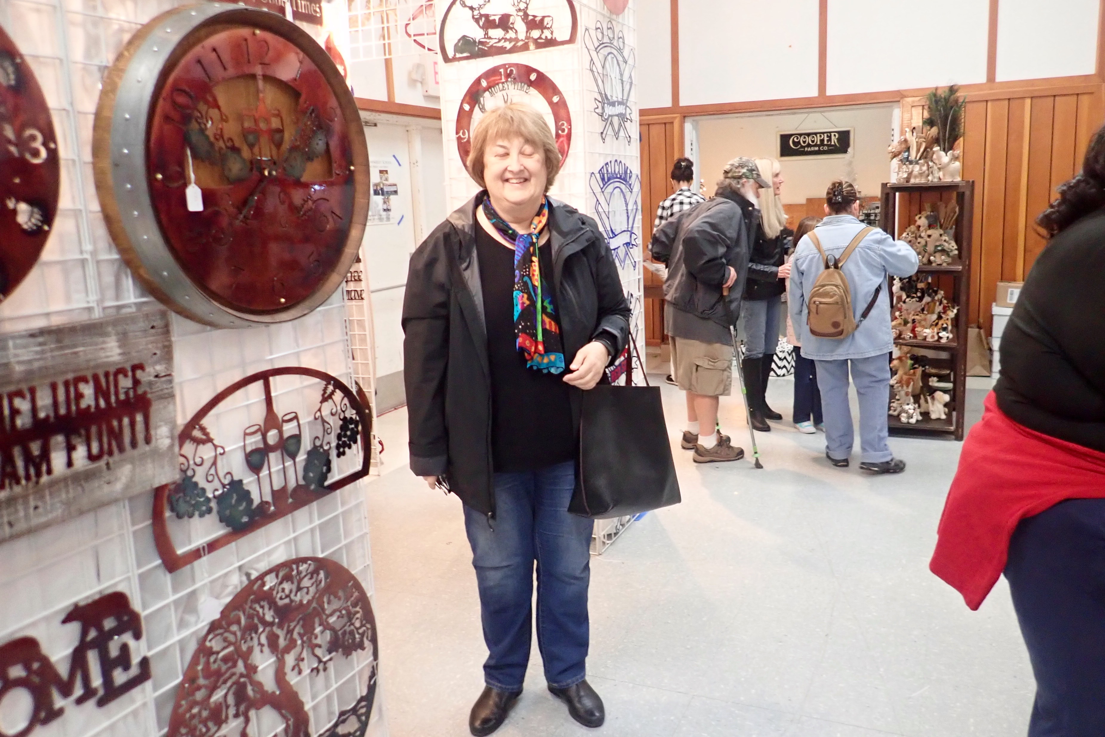 My neighbor Kathie and I went to a great craft fair early this morning. Arriving early was a very good idea. By the time we left, cars were parked over a mile away; we parked within 50 feet of the entrance!