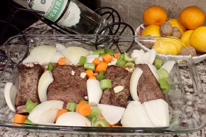 (Halftime, Colts 21, Texans 0. Beef short ribs braised and ready to go in the oven for 3+ hours.