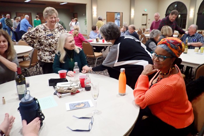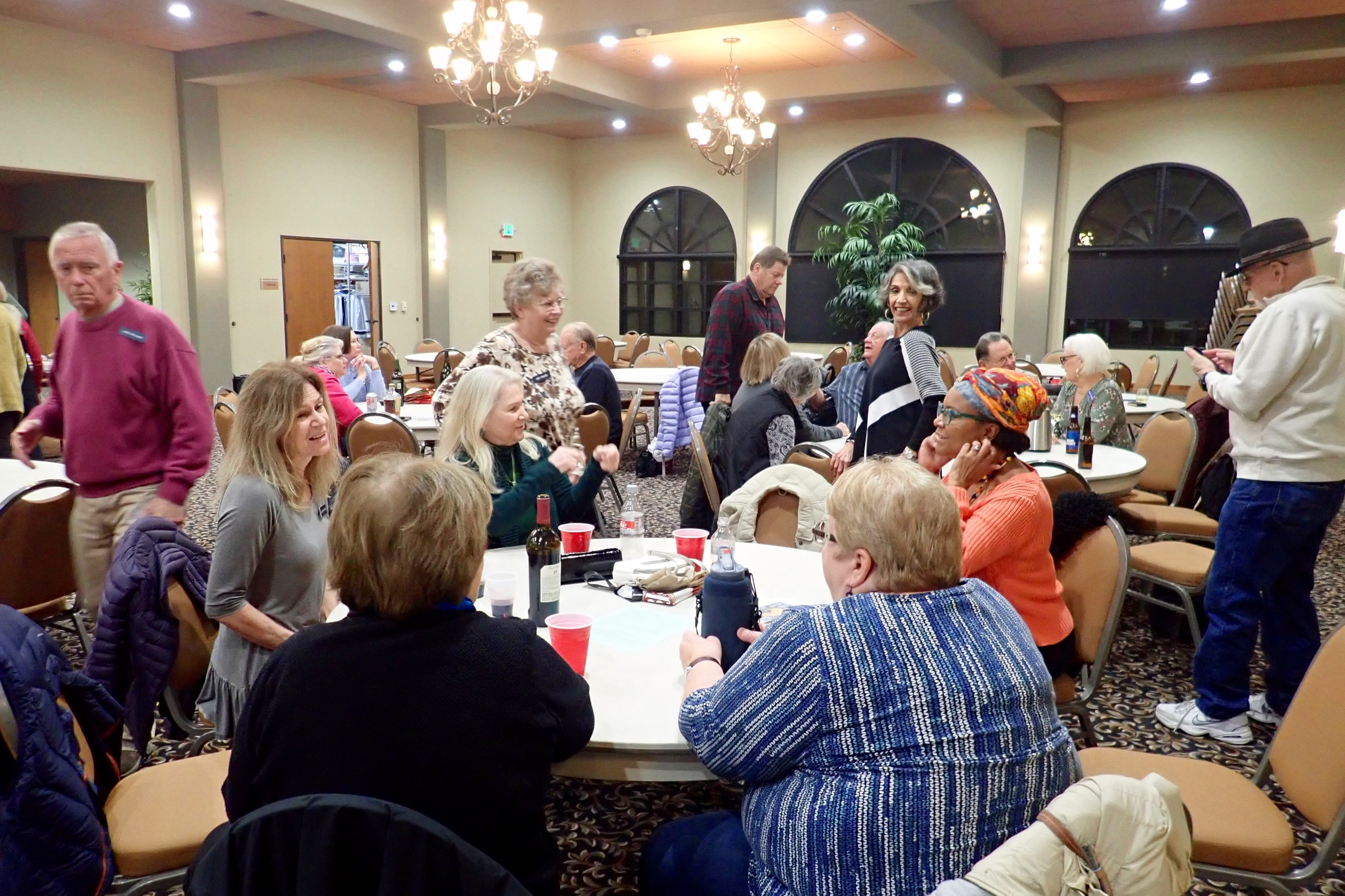 Plus, Felicia (orange sweater) who lives nearby – her first TGIF since moving here two years ago! This was just my second TGIF. We helped each other get there tonight!