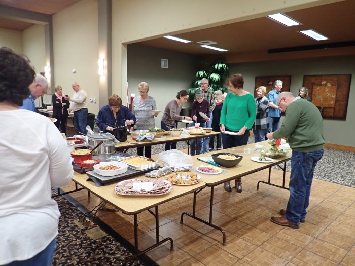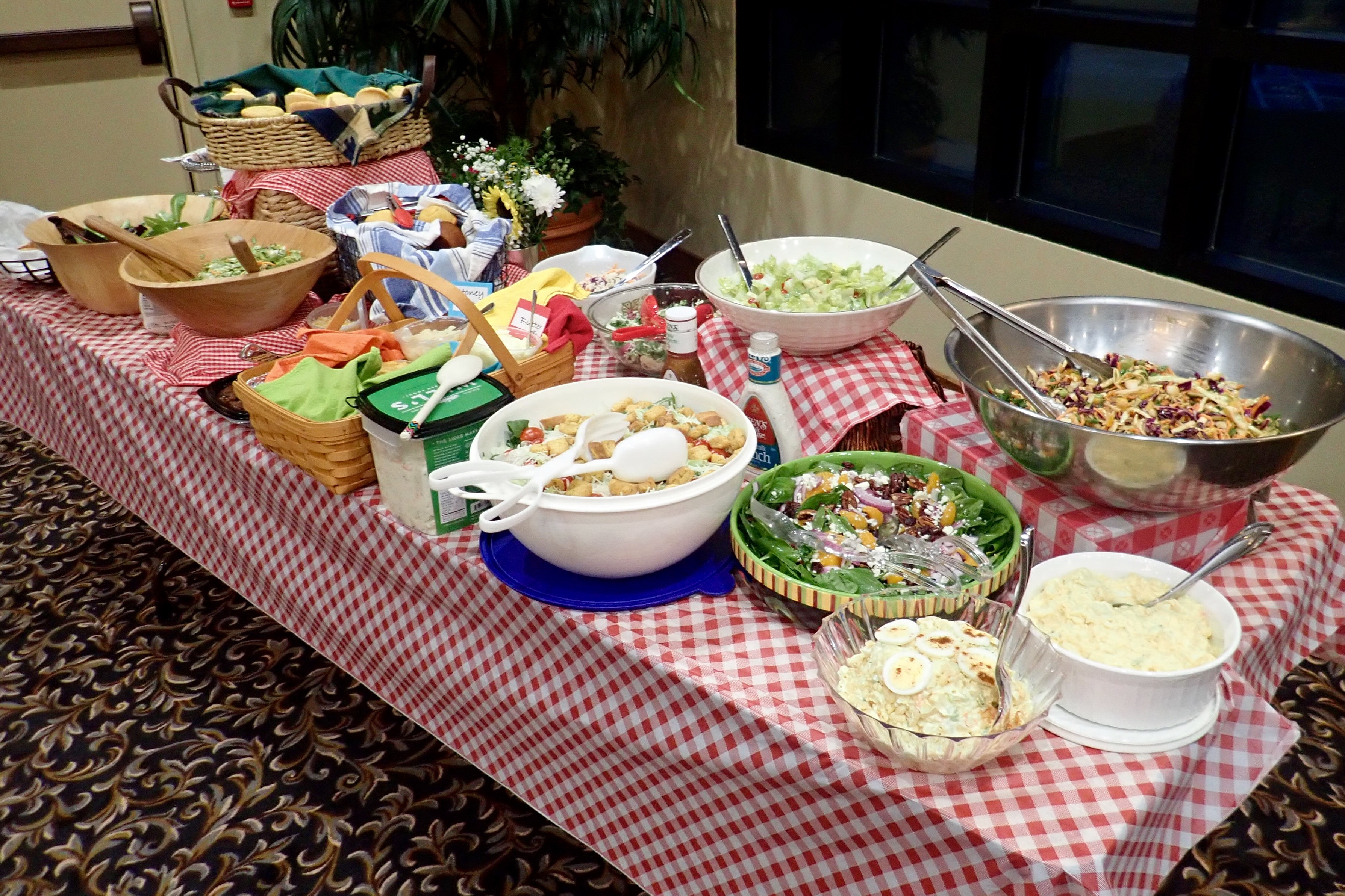 There were also 4 large tables in the corners of the room with cornbread, salad, and desserts.