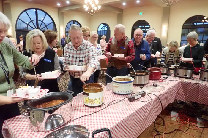 This was the 10th Annual Four Seasons Chili Cook Off tonight at Four Seasons. A popular (delicious) event, the ballroom was packed.