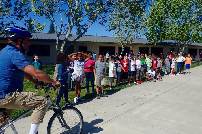 On Tuesdays, I’m at Stonegate Elementary and have 6 members. On Wednesdays, I’m at Bridgeway Island Elementary and have 25 members! This requires a whole different teaching strategy and more LCIs to lead the street rides. And there are only 3 club members at Westfield Village. Sweet! My biggest problem appears to be an inability to take pictures and coach at the same time. Thus, the above picture is the only one I’ve taken over the course of 10 club meetings in 5 weeks.