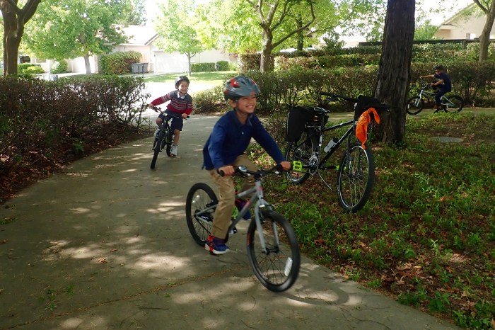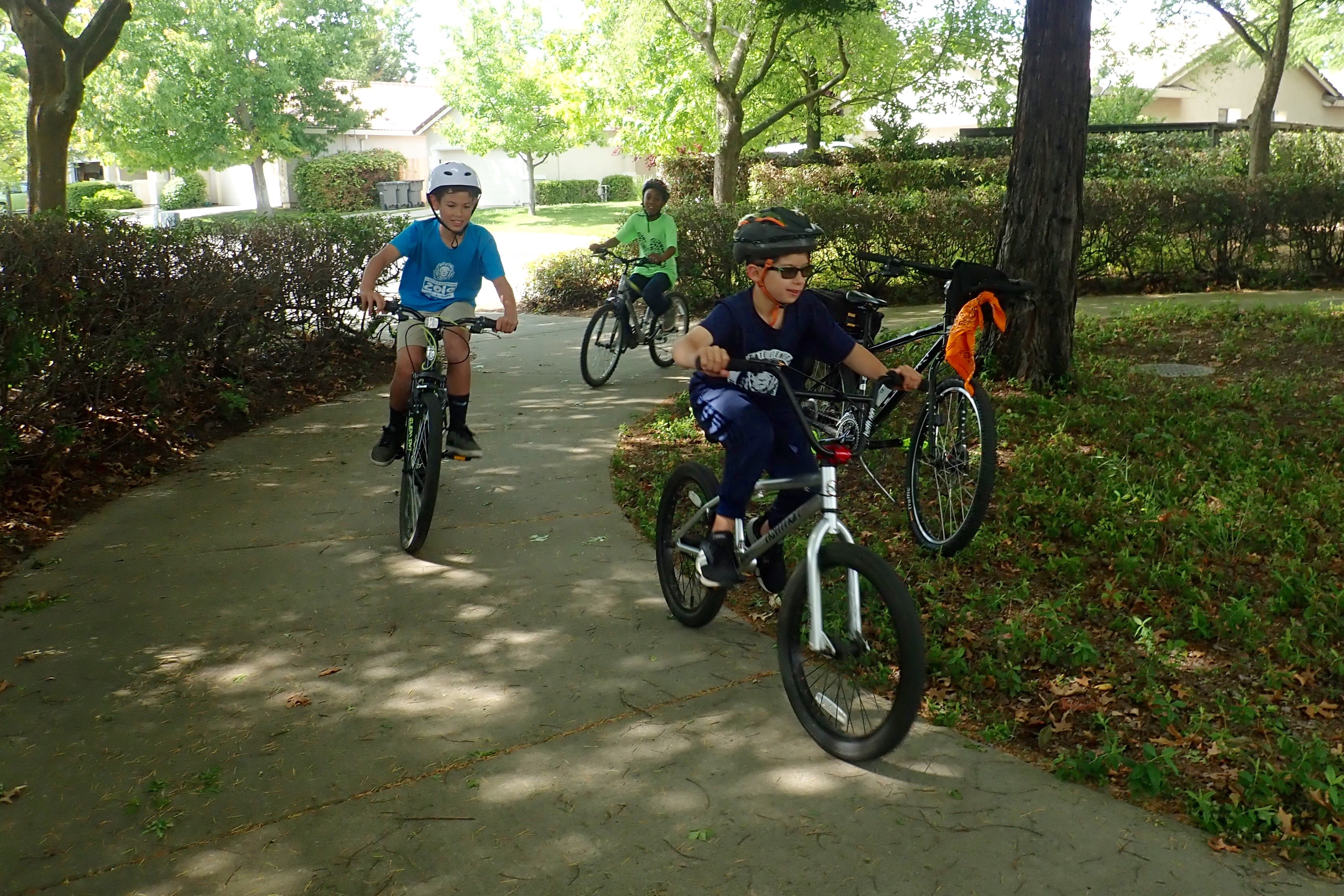 Now that all basic street-riding skills have been taught, it was time to practice those skills on the street. Which we did. Then we rode a cool trail with a (sort-of) round-about. All the boys loved riding around and around, relatively fast, laughing all the way.