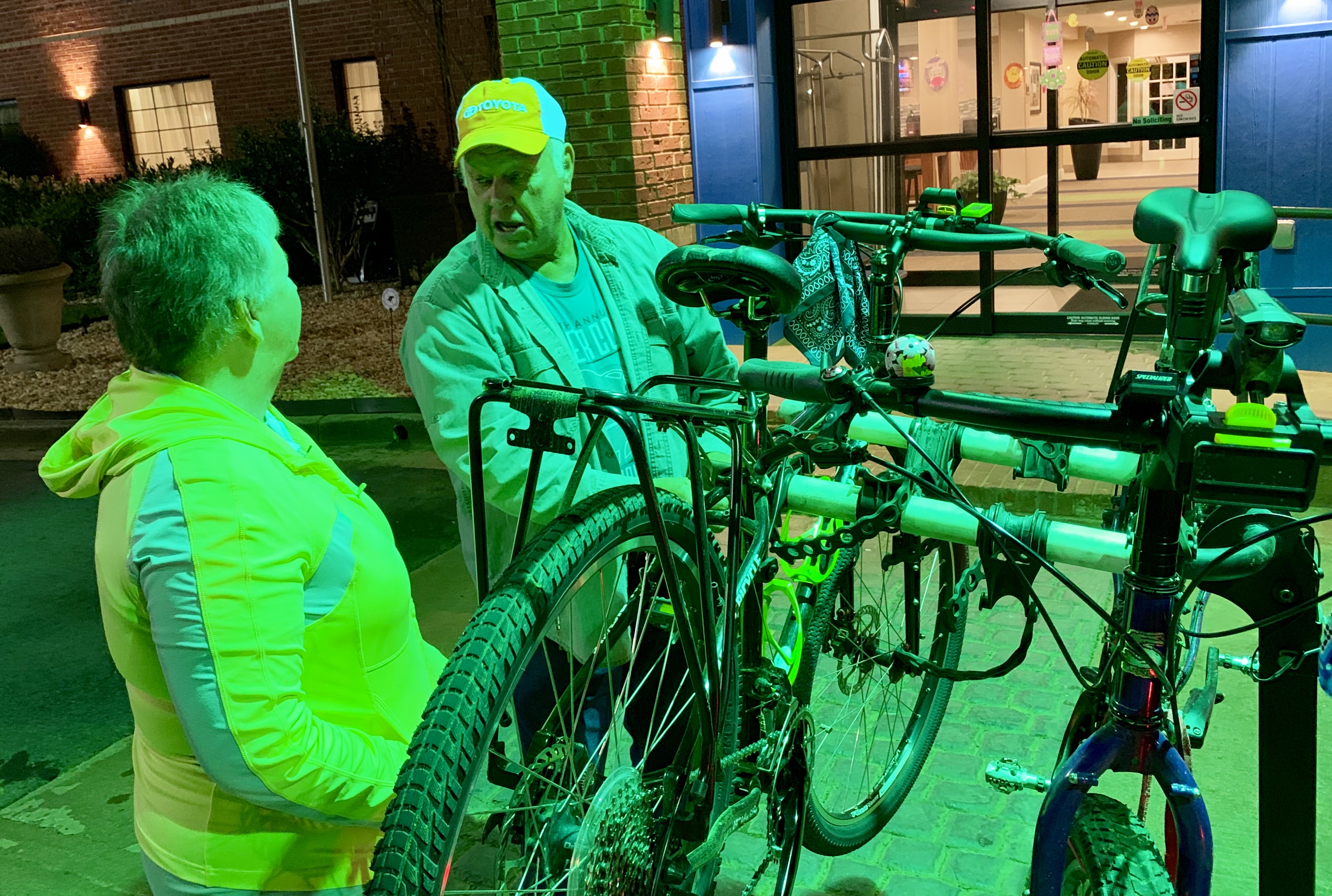 We loaded our bikes and gear onto Billie’s pollen-covered car and drove to Greenville South Carolina.