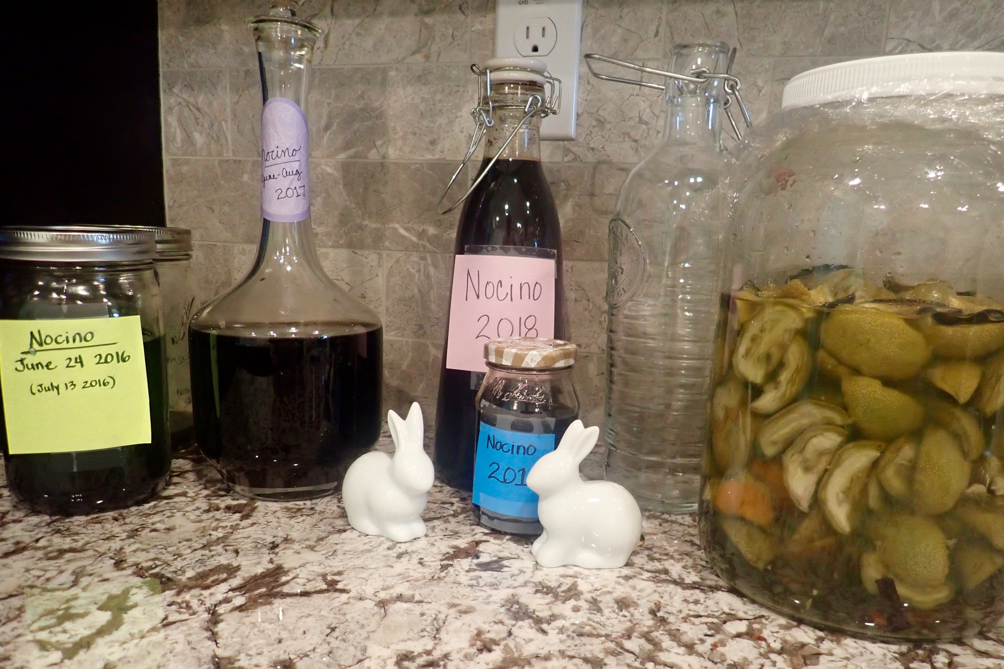 This year, Adrienne, Linda Chaix, Kathy Wymore, and Sandi Guarello came over to help make nocino. I thought I took several time-lapse pictures but … apparently I didn’t. Darn! We had breakfast, made nocino and tasted three previous “vintages”. Adrienne’s face was probably the funniest – I don’t think she liked nocino very much.