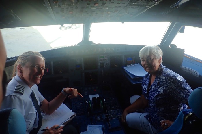 When I asked if I could take a picture of the cockpit, the captain got up so I could sit in his seat and he could take a picture. I didn’t expect that at all. The co-captain is to the left.