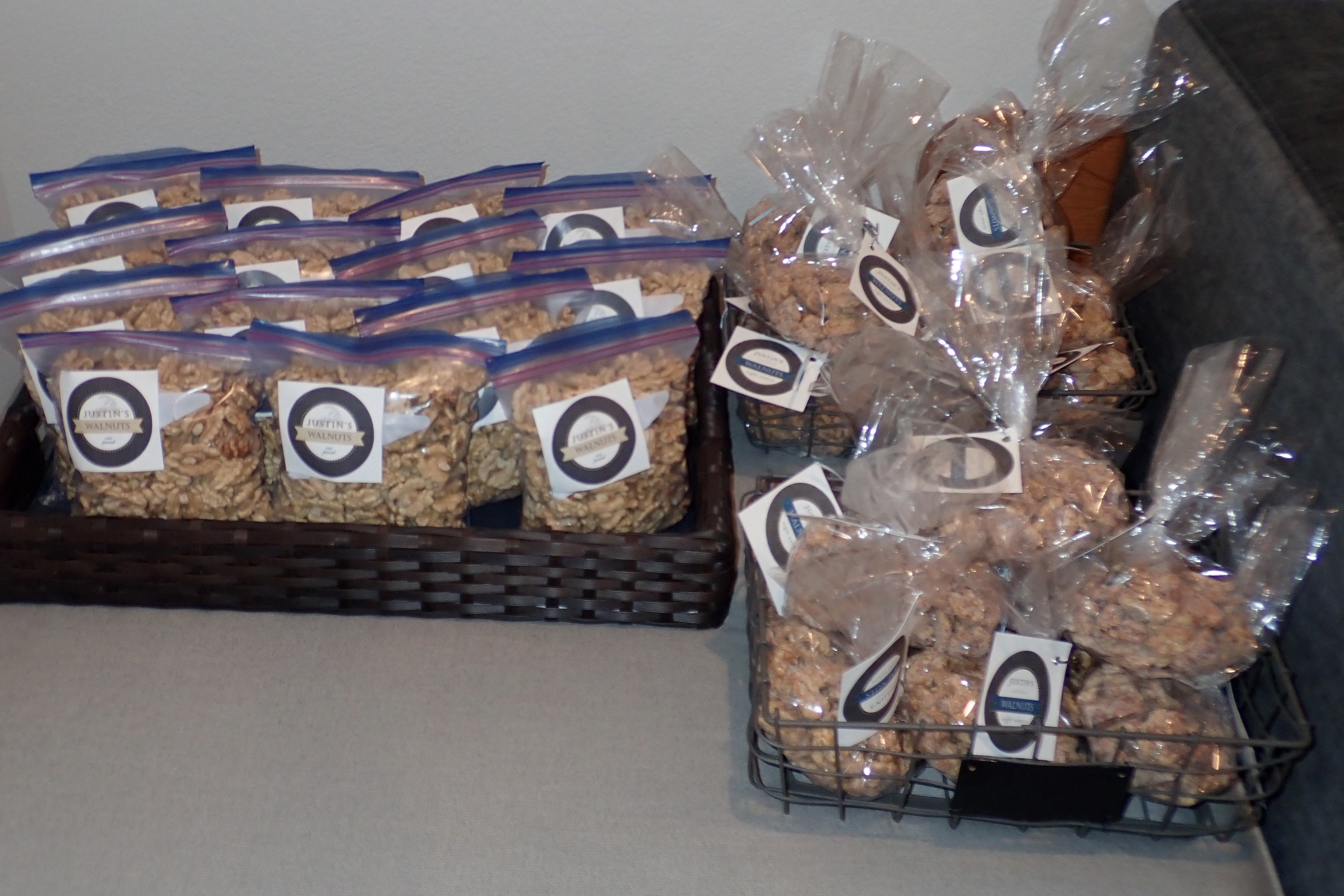 followed by making candied walnuts and making one-pound packages of walnut halves.