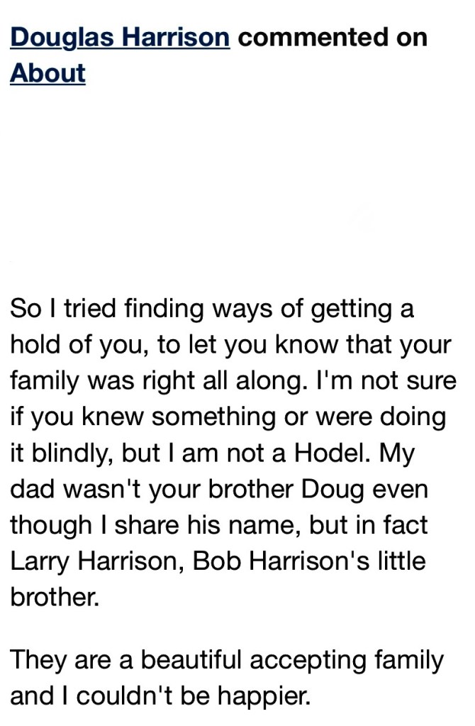 My parents were right! And I’m glad Doug Harrison found his true family.