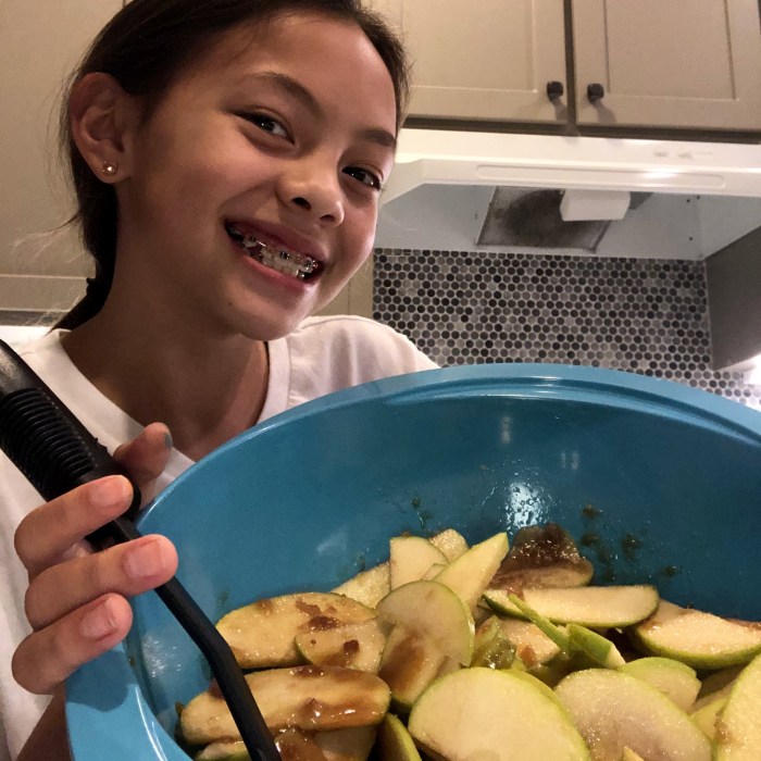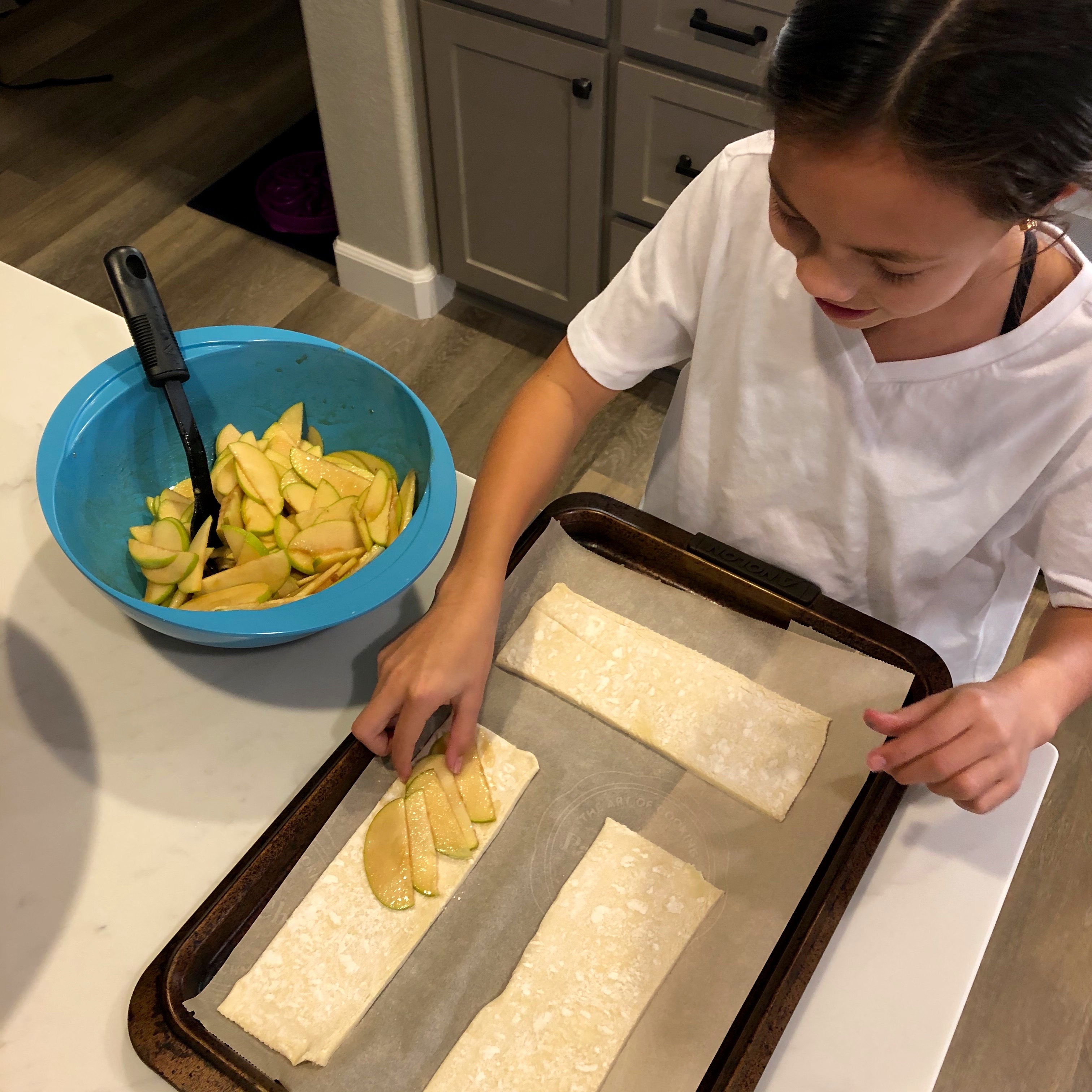 I picked up Sophia and Avery at school on Tuesday, then took Sophia to her ortho appointment. Sophia’s homework tonight was to complete a project for the Witch of Blackbird Pond: baking one of 3 recipes, taking 3 pictures and getting them printed, due on Thursday. She chose an apple tart. Thais found an easier recipe online, but didn’t have a couple of the ingredients. I asked if I could run to the store for her – yes!