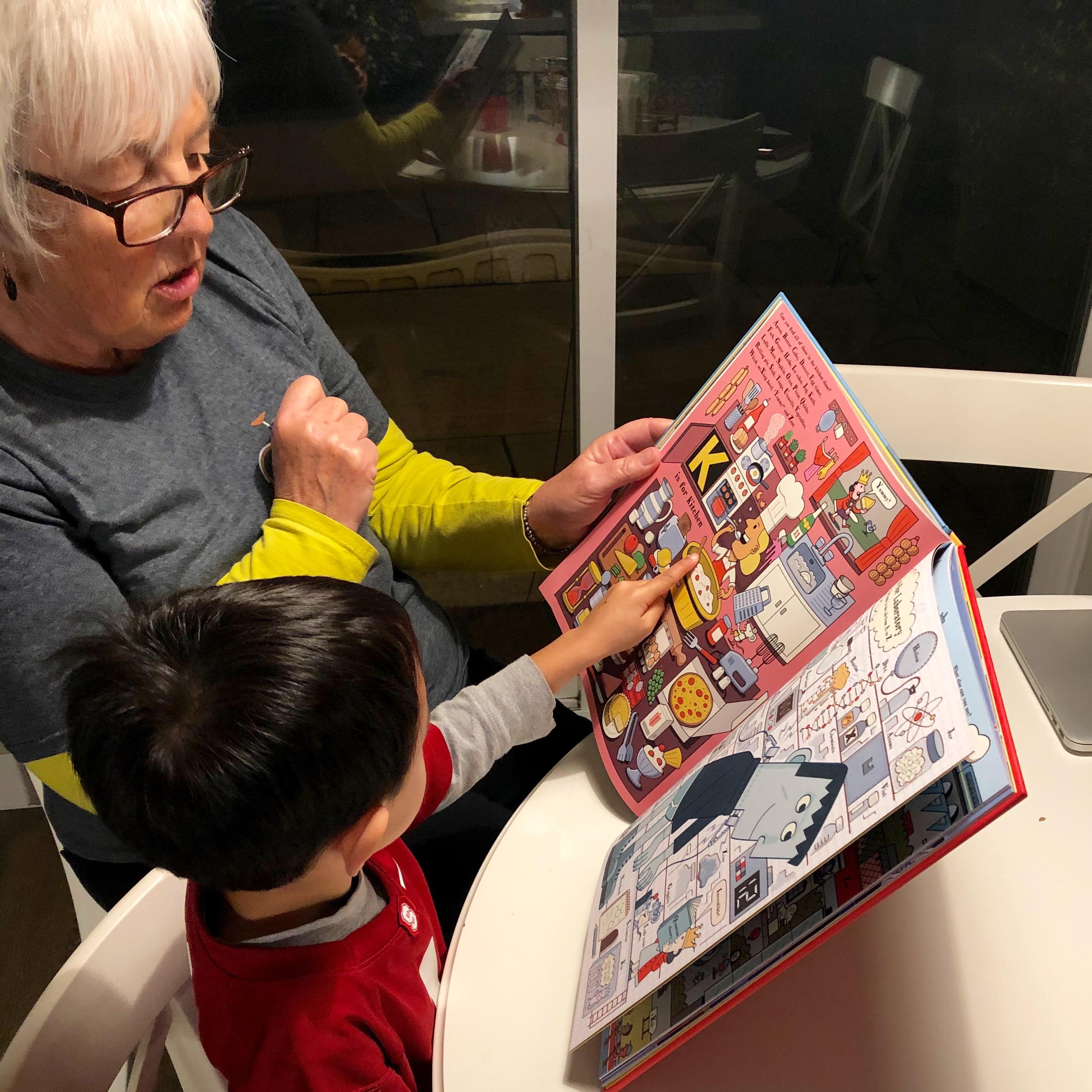 Carson is really enjoying Alphabet of Alphabets by Allan Sanders. On Tuesday, I got to read a couple of pages with him. Each page took a fairly long time. For example, on the K is for Kitchen page, you look for 26 items from A to Z plus one pair of underpants.