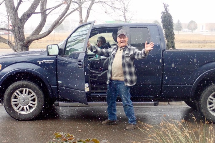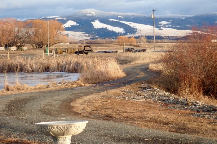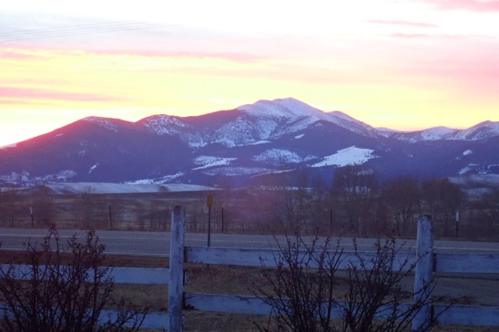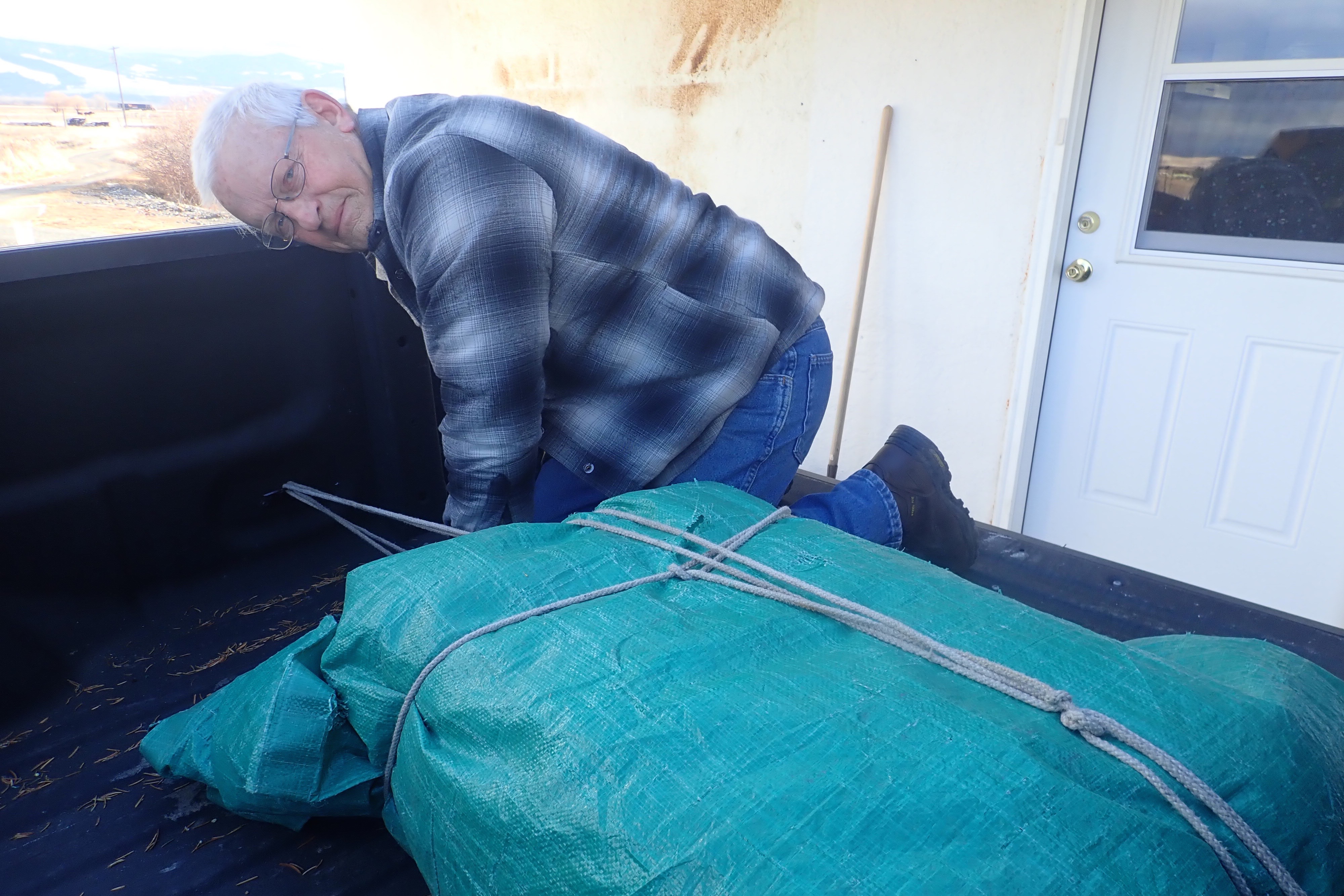 We drove to Missoula in the late morning. Because there was a 70% chance of snow and high winds, Dave covered my suitcase in a tarp and tied it down tight. Thank you!