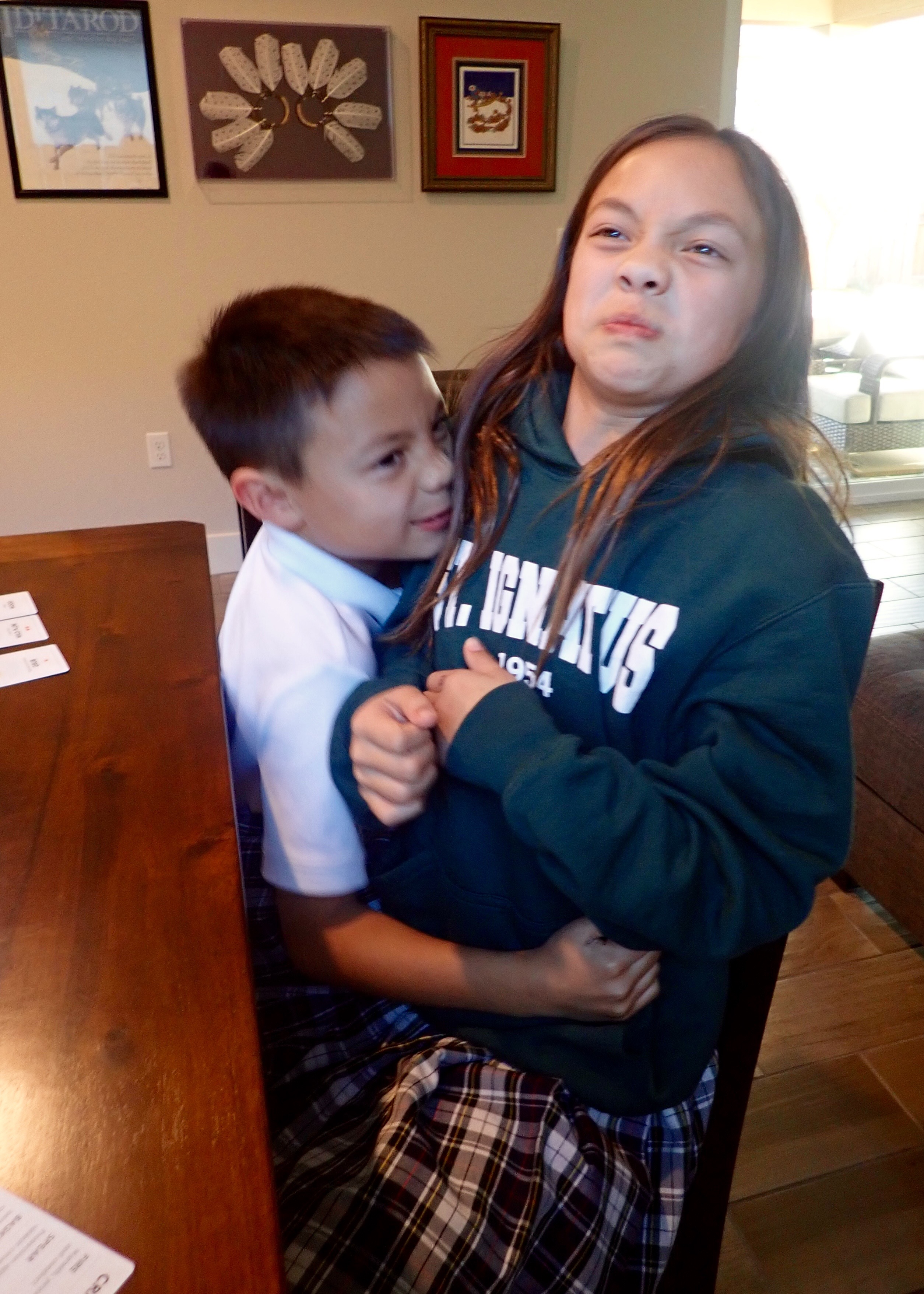 In the game Ravine, if it’s time for a health check and you only have one heart, you must draw a Madness card. You might have to hug and not let go of the person on your right until someone else (me) helps you out (right after I take a picture).