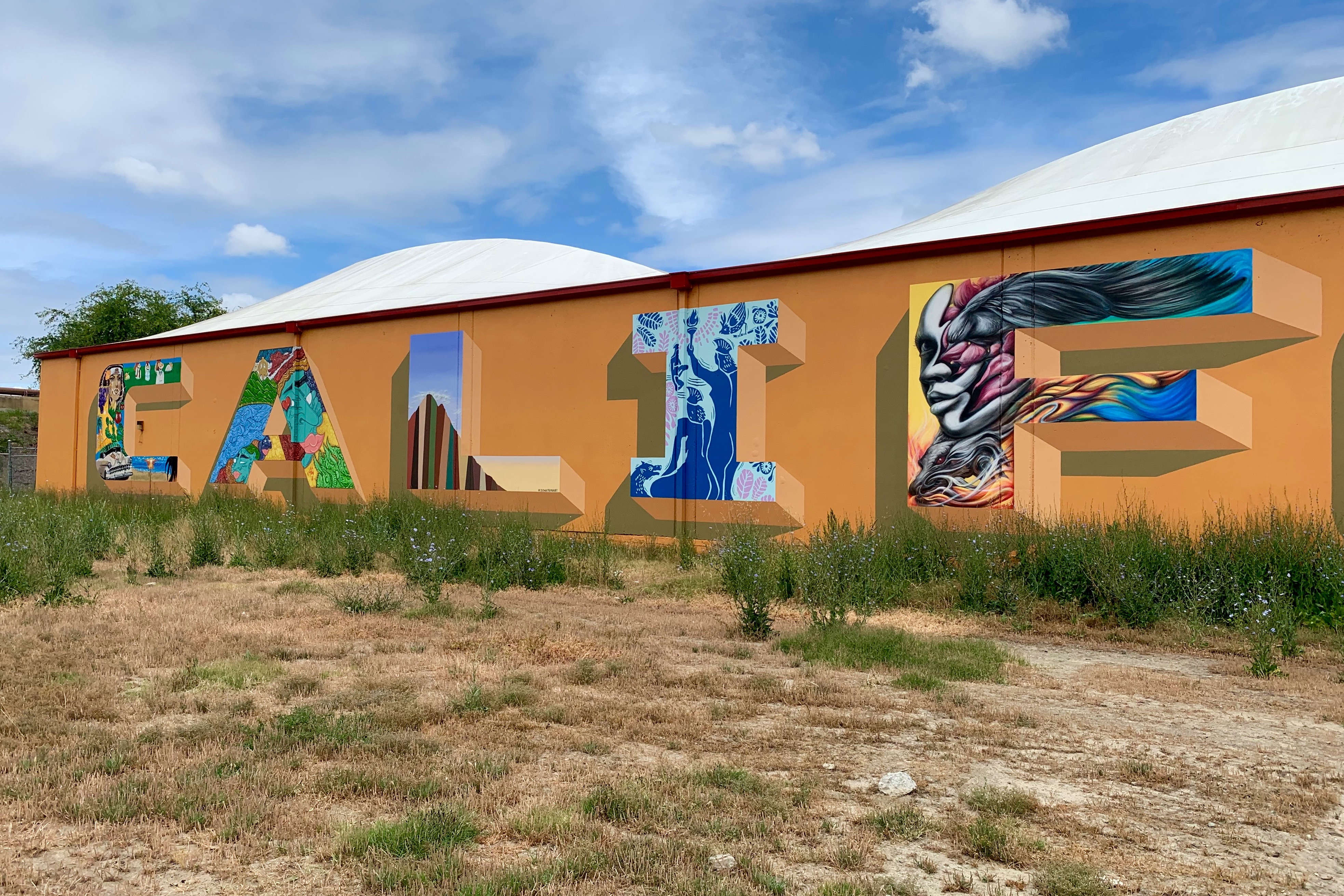 Each letter was painted by a different artist. The i’s were painted by twin sisters.