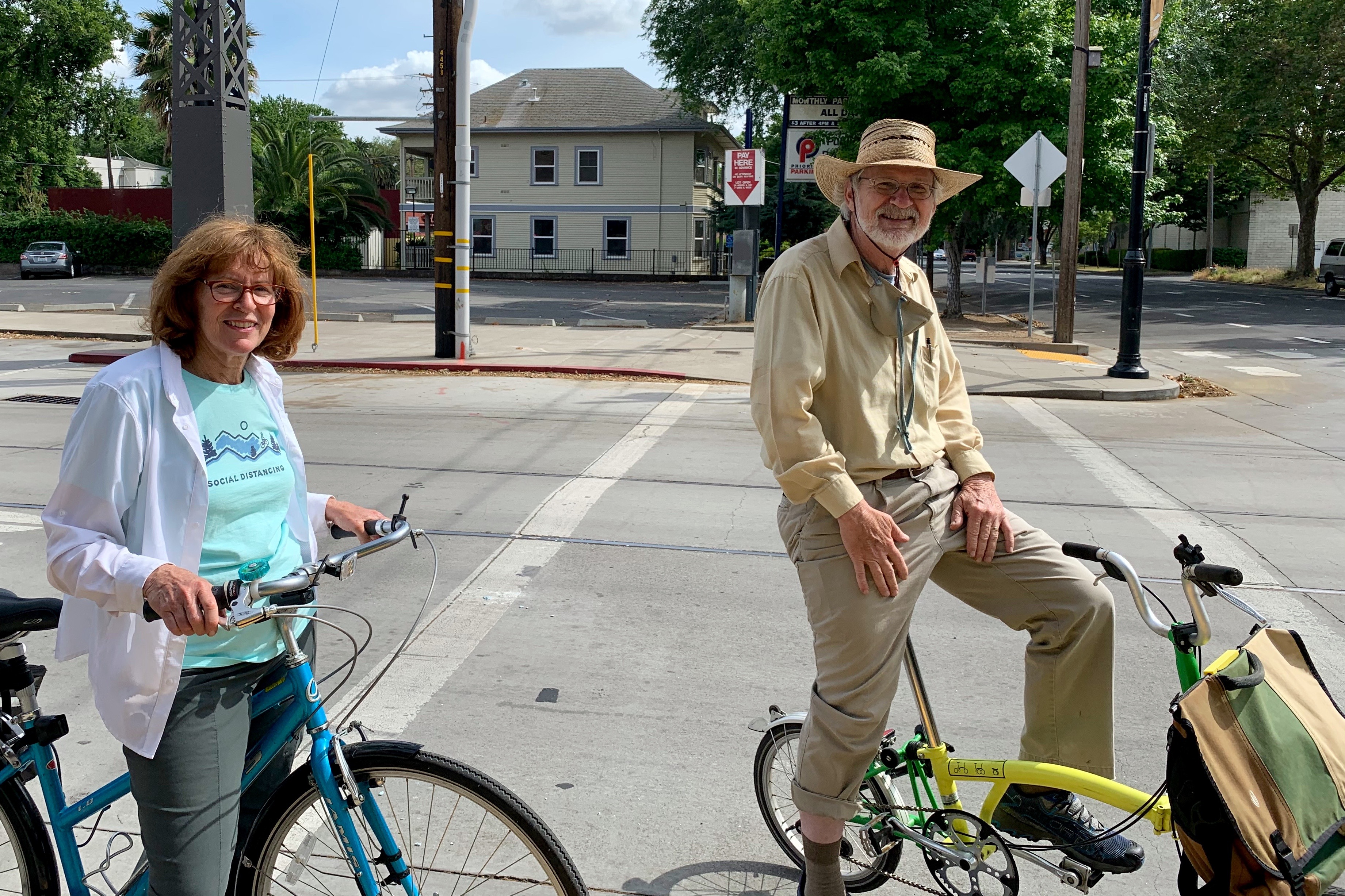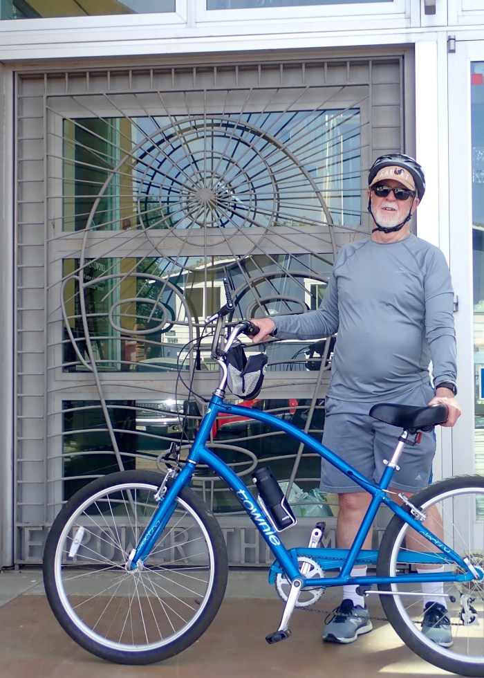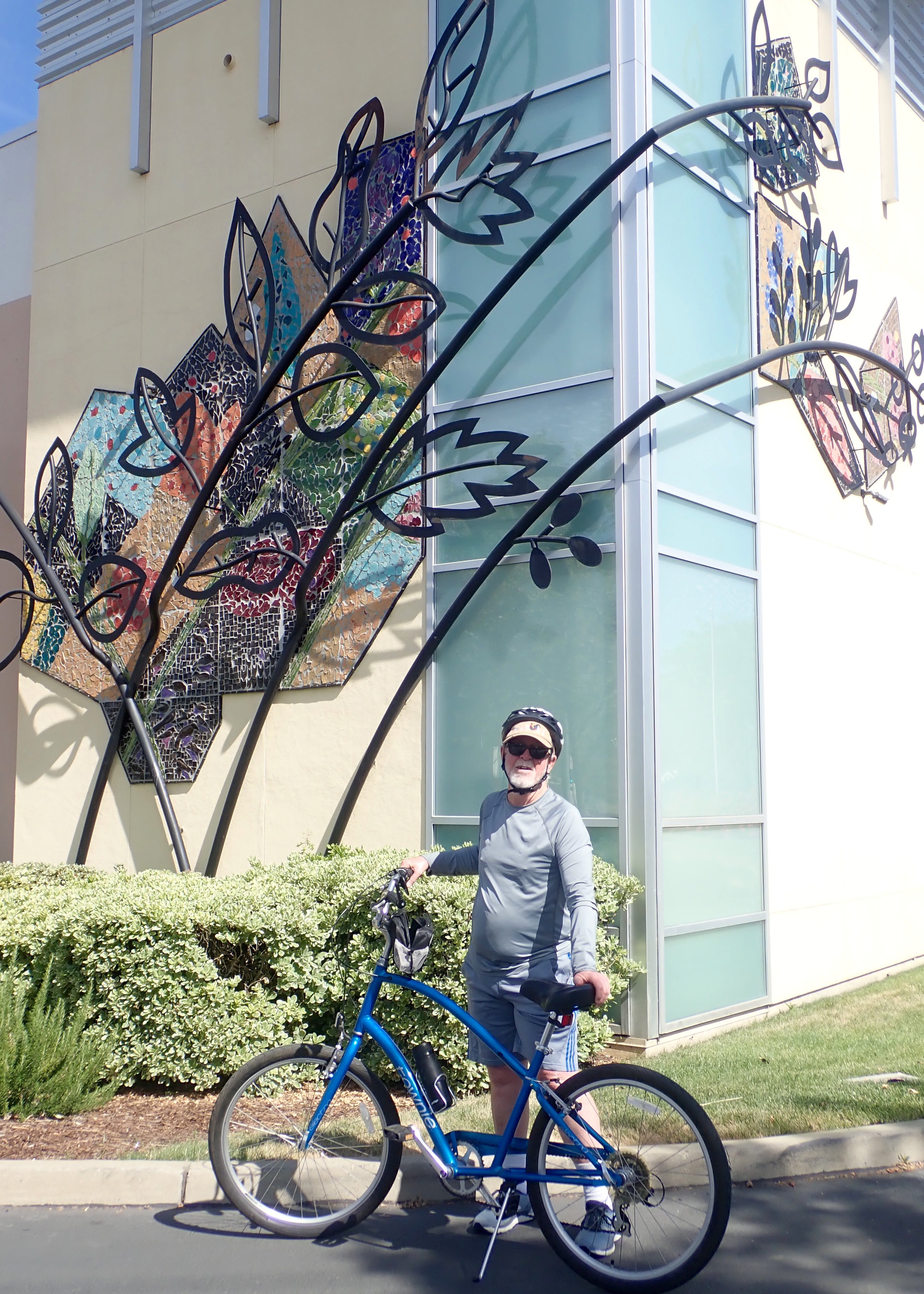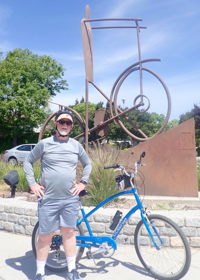 Michael Riegel is an artist with installations in various parts of Sacramento. Riding to each of these 4 pieces is a 24 mile loop, but we ended up riding more miles. This loop is the ride being promoted by SABA during week 3 of May is Bike Month. Pete was a good sport and let me take his picture in front of all of them. Others who do this ride will post their selfies to social media.