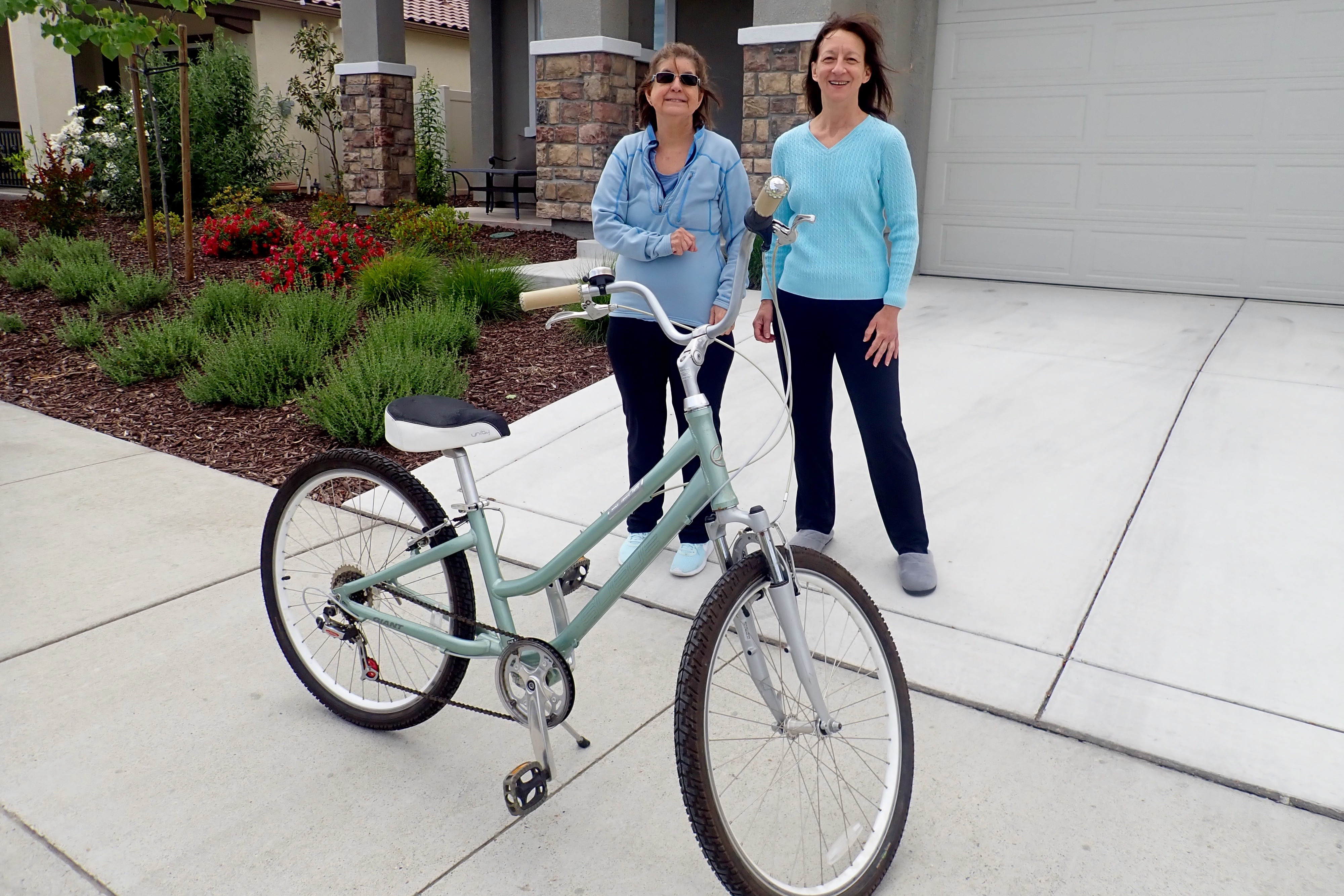 One of my neighbors, Ray Krause, was given a bike which he refurbished. Ray brought the bike to my house on the same day, another neighbor, Mary Kit, contacted me to find out if there were any bikes for sale within our community. I keep a list of Bikes for Sale/Bike Wanted. Mary’s sister, Bonnie, recently moved in with her and she wanted a bike. A perfect match and FREE! – all in one day.