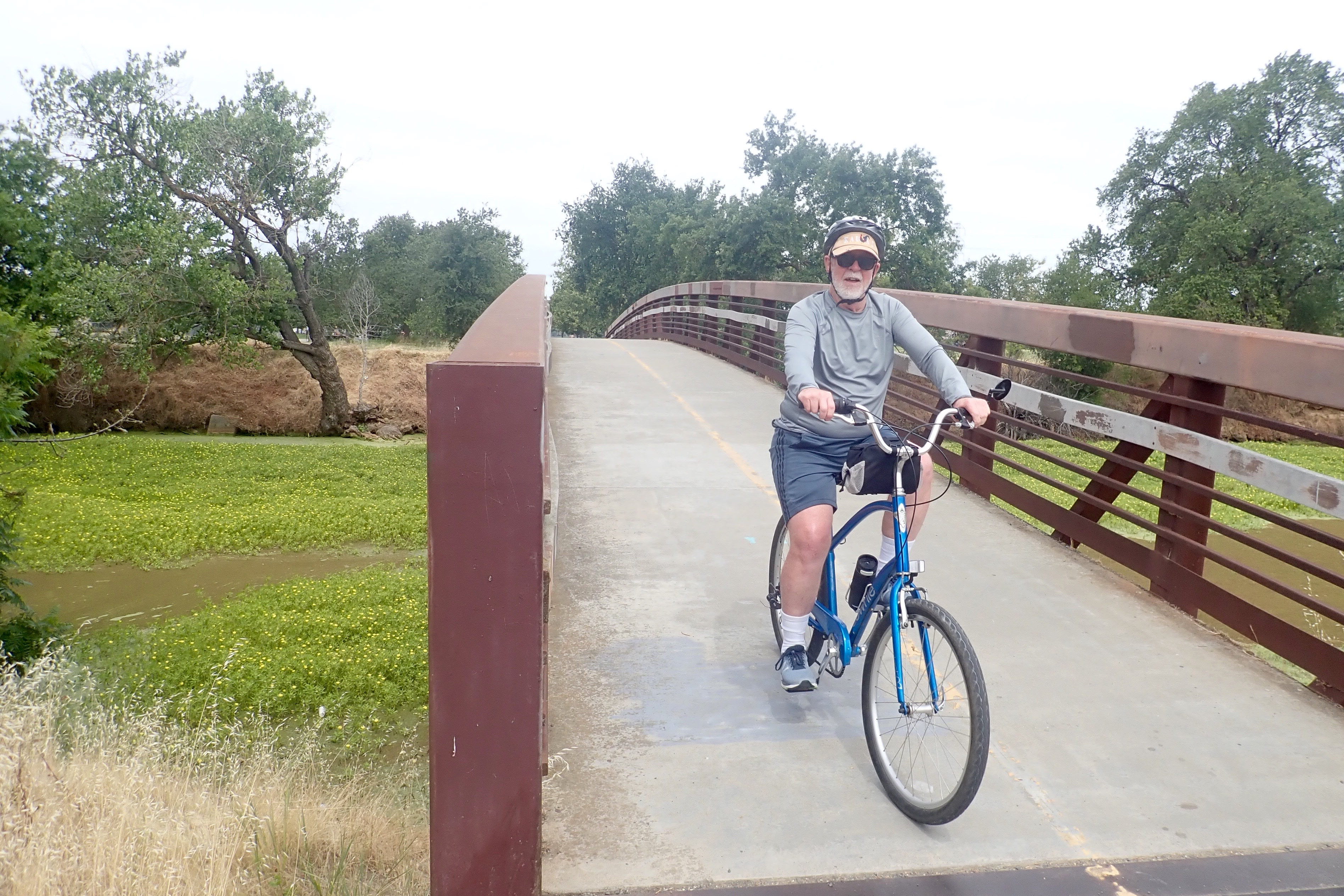 Two or three times a week, Pete and I go for a ride. Depending on the weather and what’s going on that day, we ride up to 20 miles. Today’s ride was about 12 miles. The “Leroy Greene ride” leaves the bike trail, goes past Leroy Greene Academy and winds through a residential neighborhood underneath the I-80 bridge over the Sacramento River.