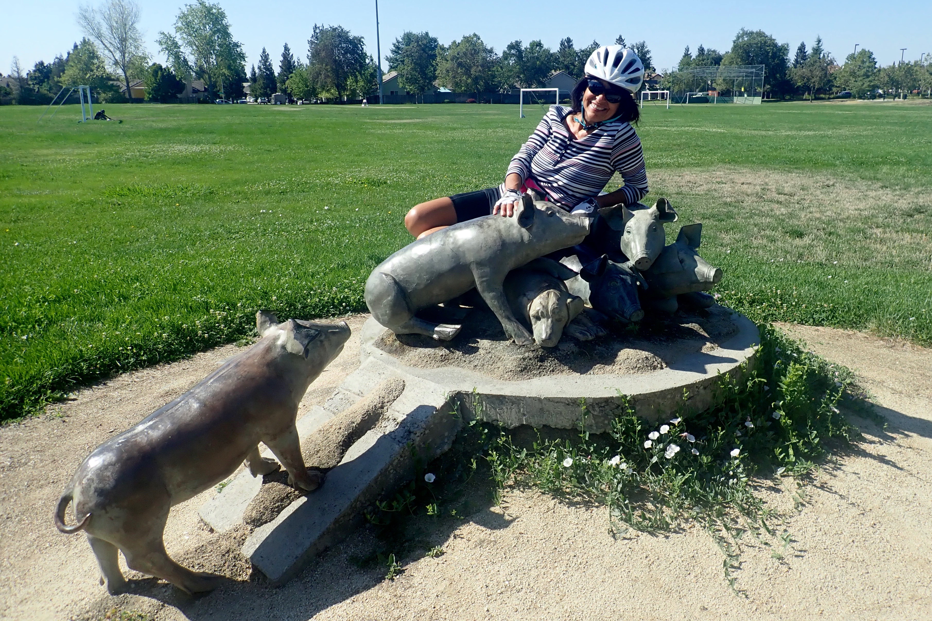 Thursday. Lorraine and I rode 11 miles. I showed her the pigs in Witter Ranch Park: