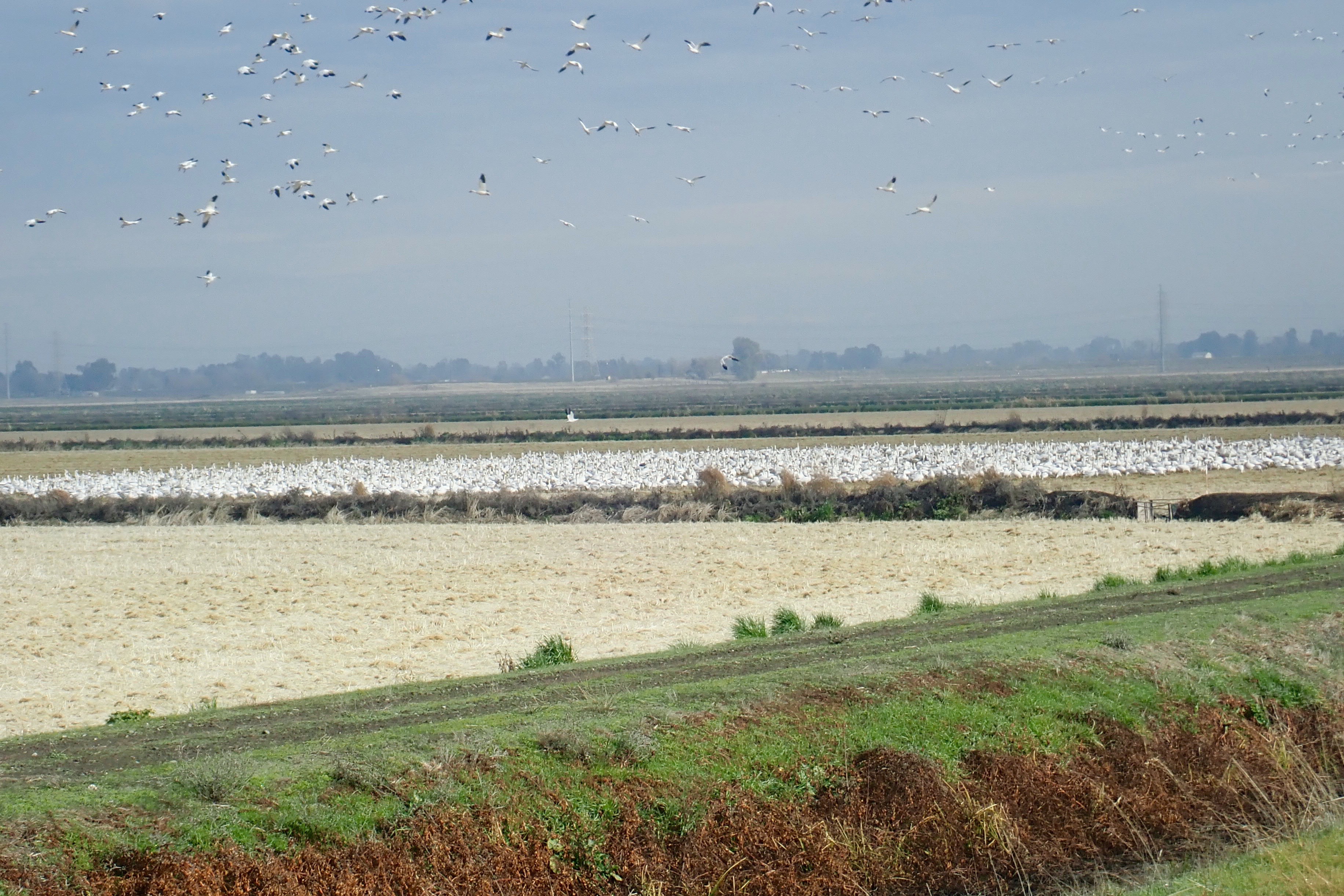 We looked across Elkhorn Blvd and saw a huge mass of white birds in the harvested rice fields with hundreds more birds getting ready to land.