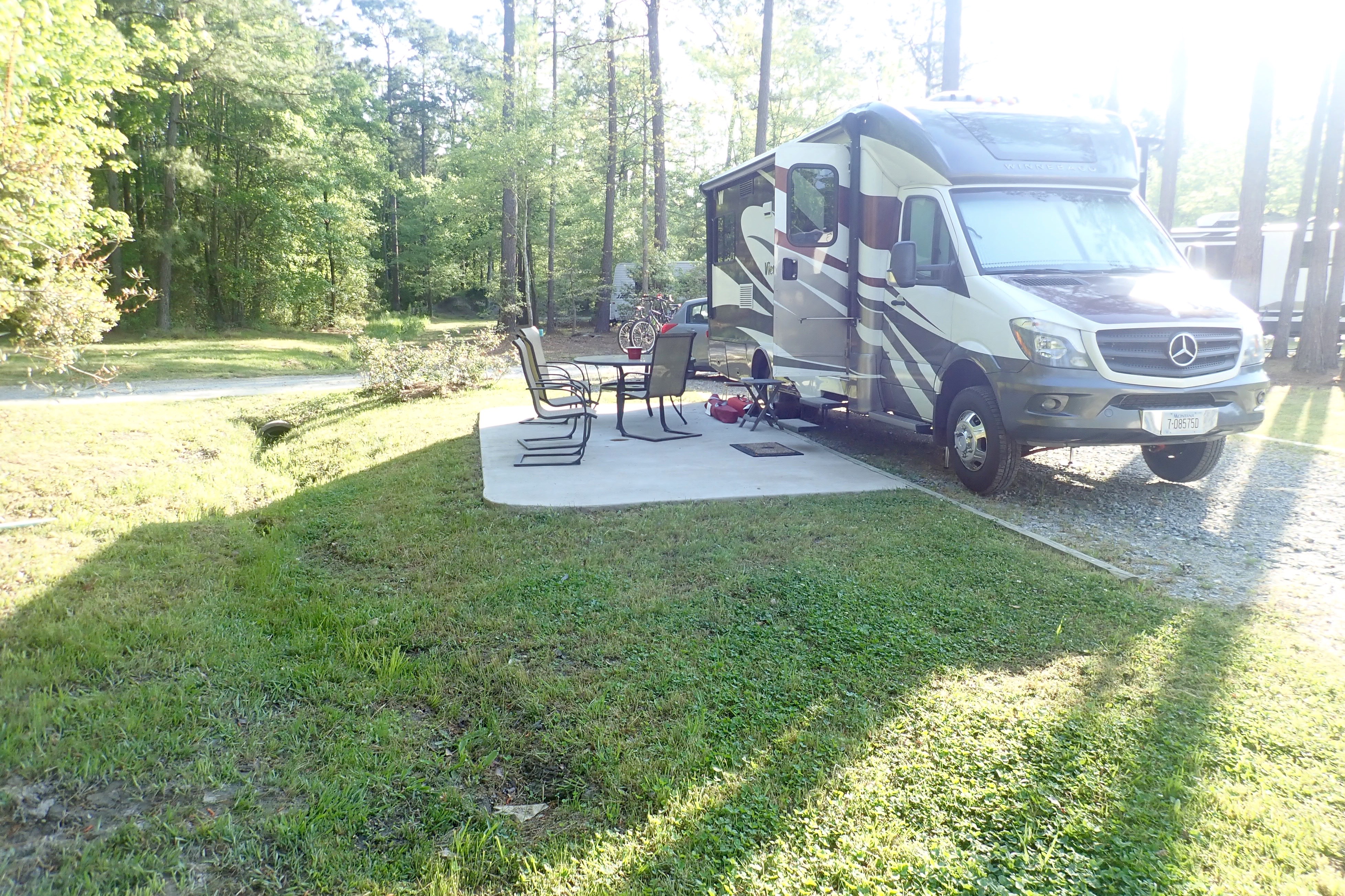 We arrived at RVacation RV park in Selma by mid-afternoon to sunshine and (at last) warmer weather. We are southeast of Raleigh and near several very good bike trails.