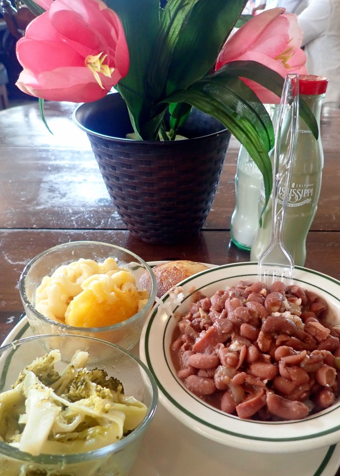 Red beans and rice with sausage – sooo good! – mac and cheese, broccoli, and jalapeno cornbread muffin: