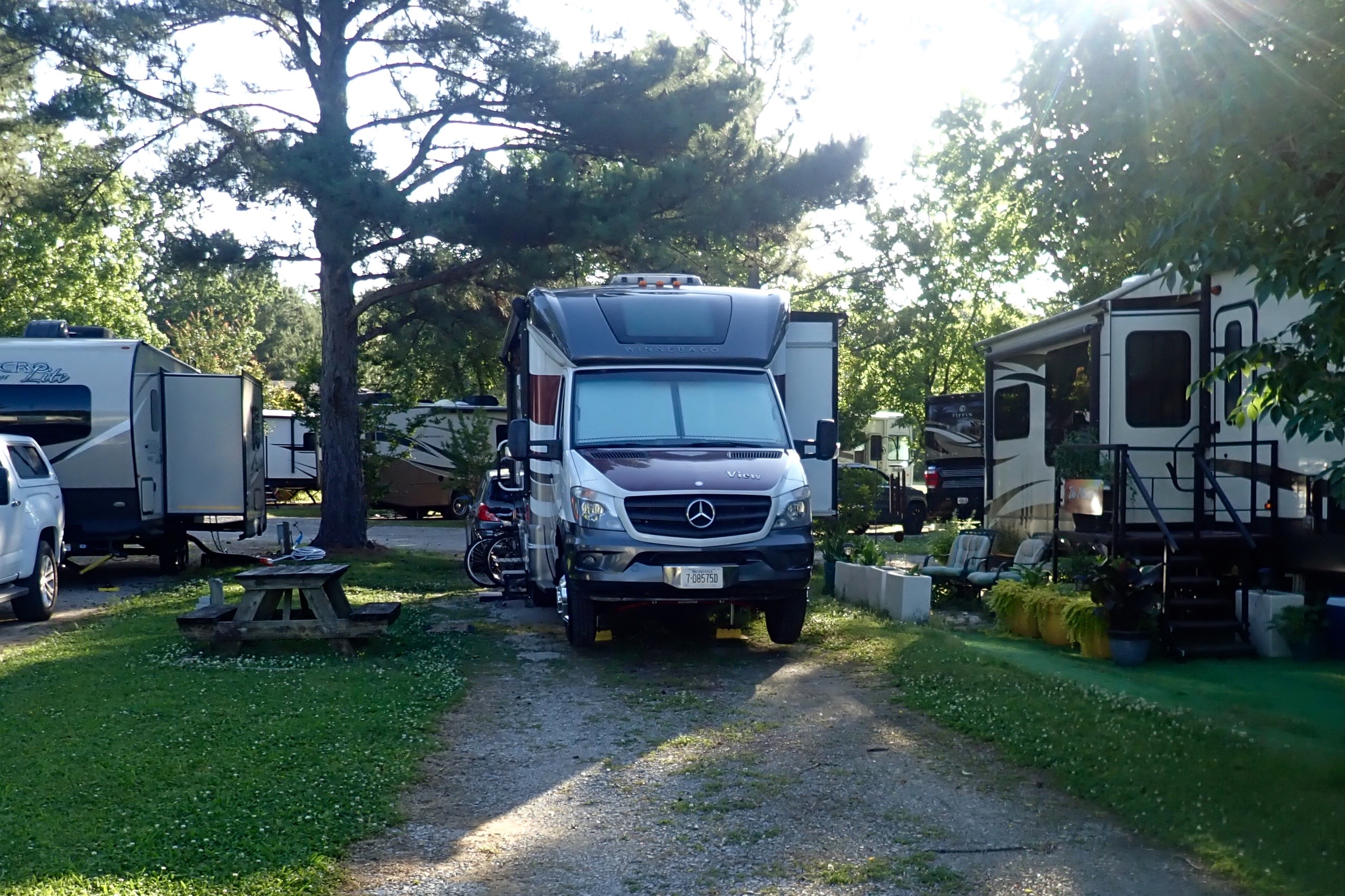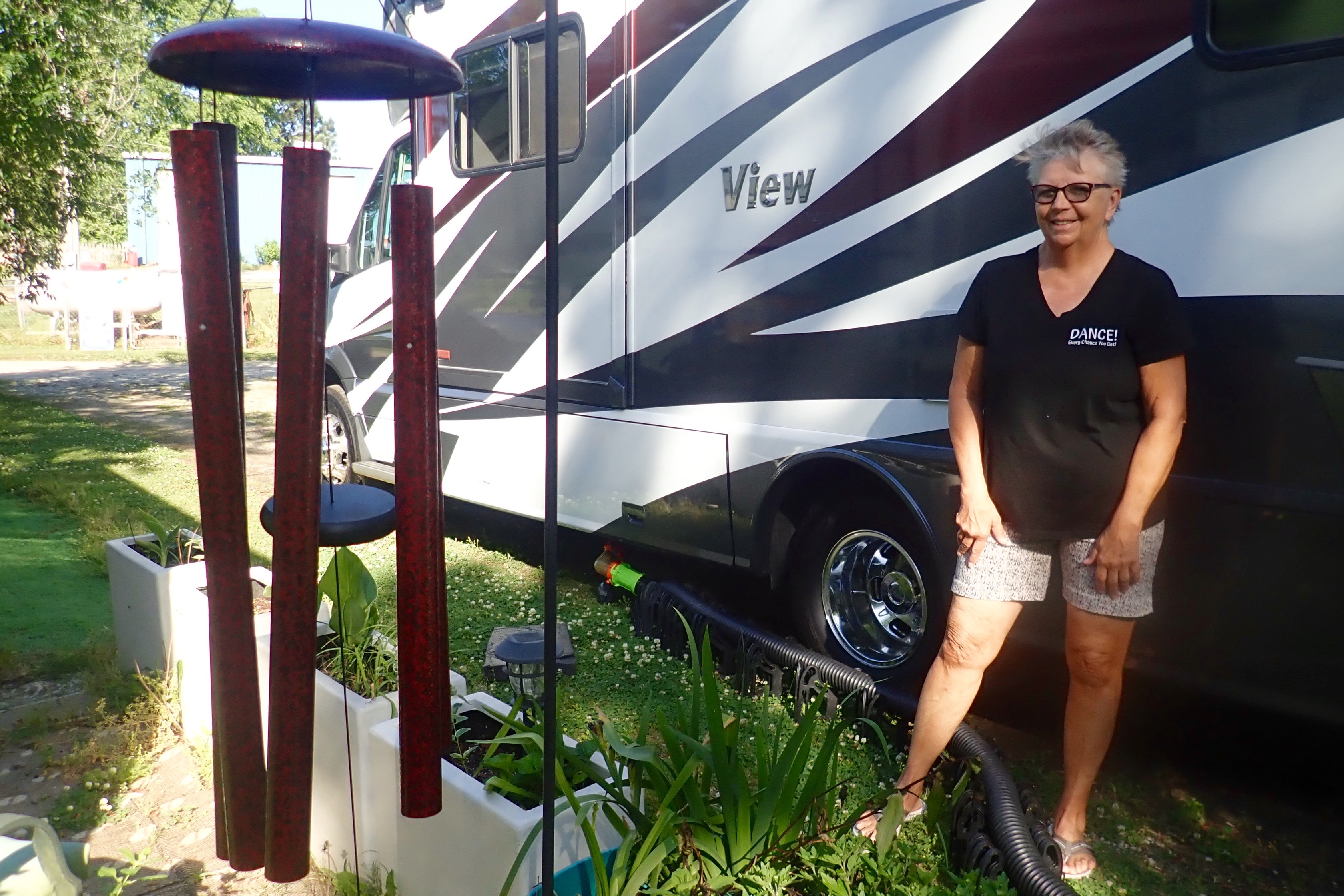 Our spot at this campground was rather close to the neighbors on either side of us. Lolli and Pop (really!) are to the right. At the back of their rig – and right next to Billie’s bedroom window – were a large set of chimes.