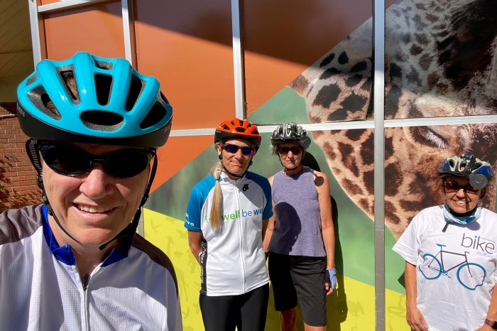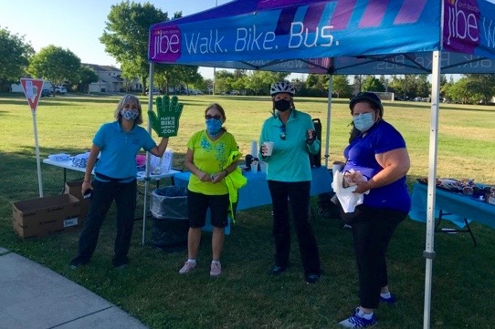 Wednesday May 5. Brake Fast Wednesday at Witter Ranch Park from 7-9 am. Mellissa Meng from Jibe hosted this May is Bike Month coffee and pastry stop. Mellissa Barbara Cindy C and Cindy R. Picture by Cheryl.