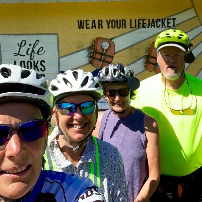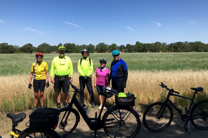 Saturday May 1. Cherry Island bike ride along the Dry Creek Parkway. Great picture by Cheryl of Kathy Jonathan Leo Barbara and Dani: